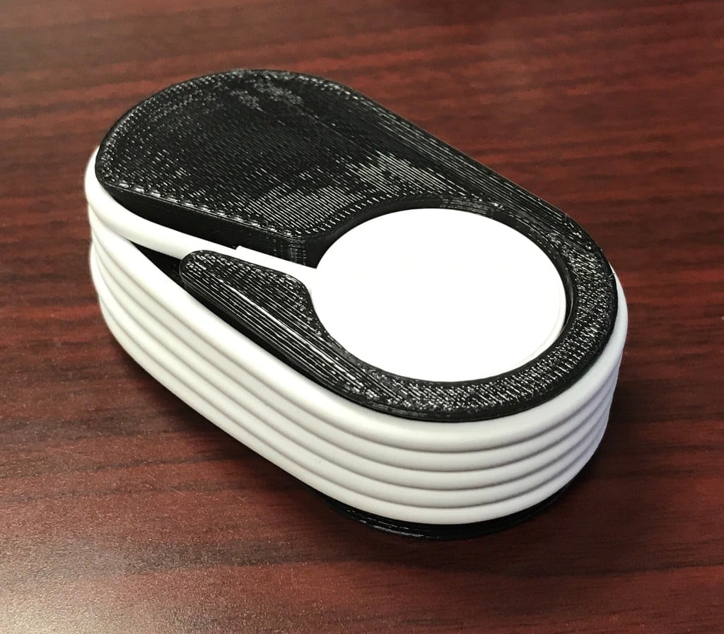 Αυτή είναι μια θήκη για το καλώδιο φόρτισης του Apple Watch σας. Με αυτή τη θήκη, μπορείτε να αποθηκεύετε τον φορτιστή τακτοποιημένα όταν δεν τον χρησιμοποιείτε. Είναι μια απλή και πρακτική λύση για να διατηρείτε το γραφείο ή το κομοδίνο σας τακτοποιημένο.
