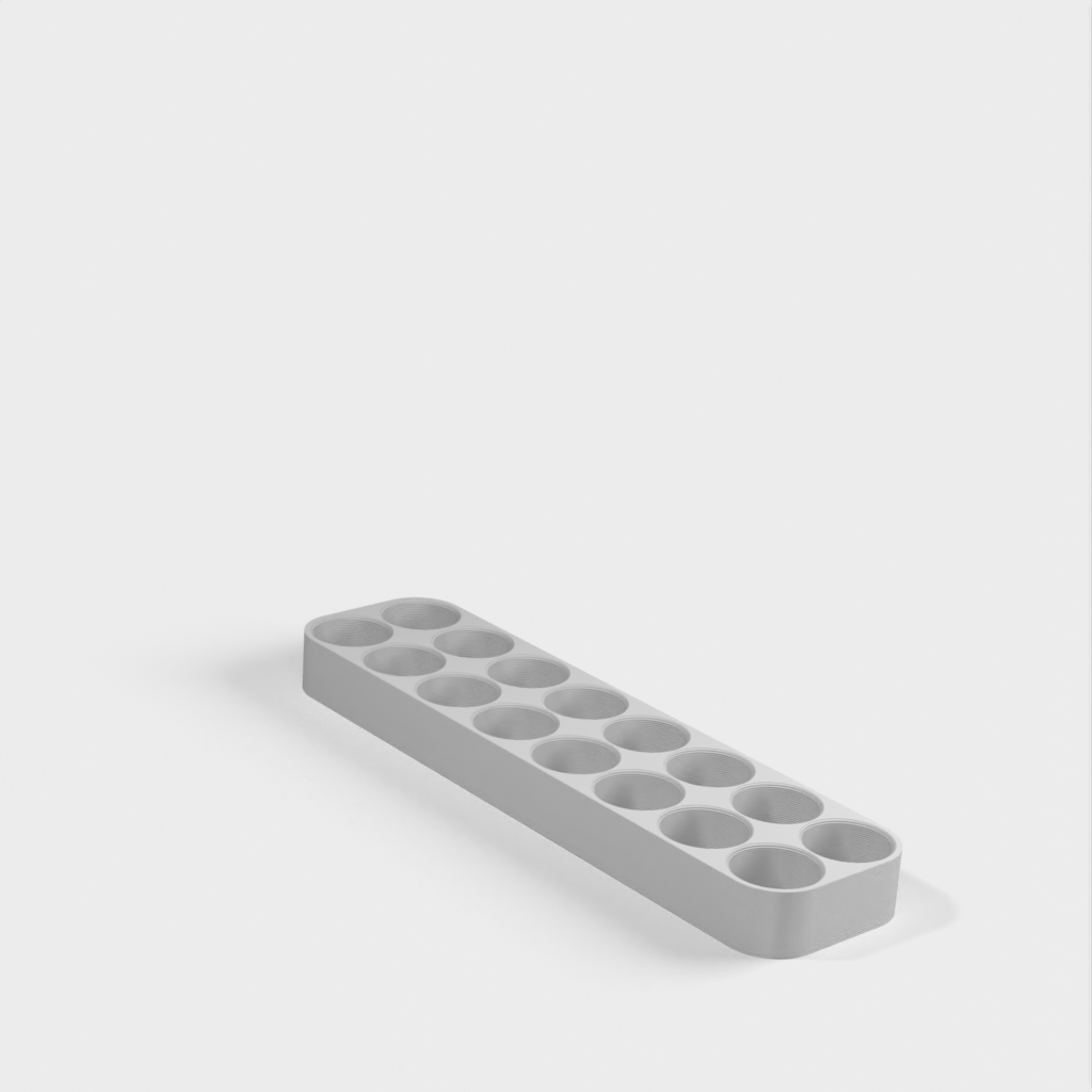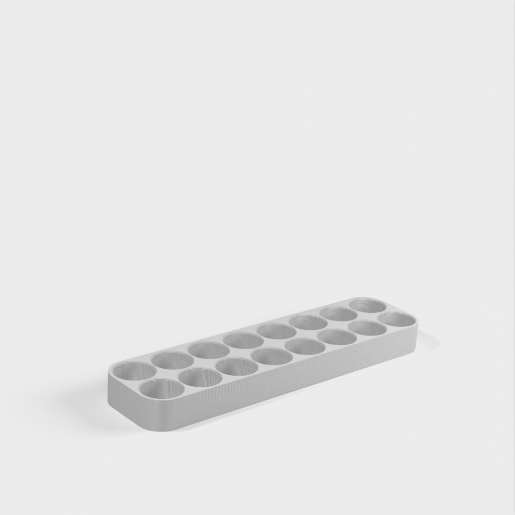 Αυτή είναι μια απλή θήκη μπαταριών 18650 για αποθήκευση σε ράφι ή τραπέζι. Ο σχεδιασμός είναι ρυθμιζόμενος χρησιμοποιώντας το OpenSCAD, ώστε οι διαστάσεις, το περιθώριο ασφαλείας και ο αριθμός των μπαταριών να μπορούν να προσαρμοστούν ανάλογα με τις ανάγκες. Το συνημμένο αρχείο stl προορίζεται για 16 μπαταρίες.
