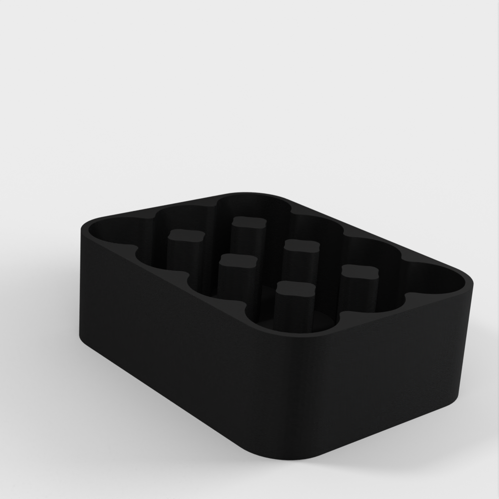 <Διατηρήστε τις μπαταρίες AAA, AA ή 18650 οργανωμένες με αυτή τη θήκη μπαταριών. Μπορείτε εύκολα να τις στοιβάζετε κολλώντας τες πλάτη με πλάτη. Μια πρακτική λύση για να κρατάτε τις μπαταρίες σας στη θέση τους και να αποφεύγετε την ακαταστασία.