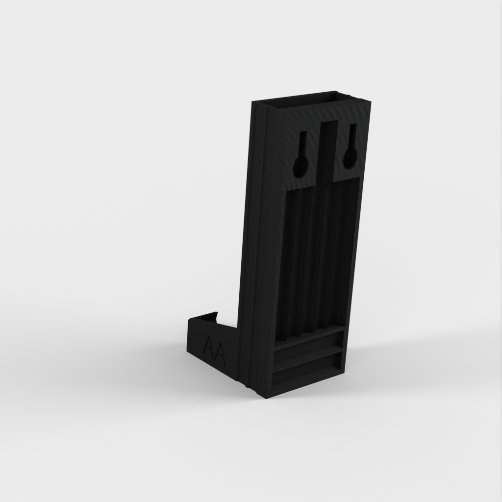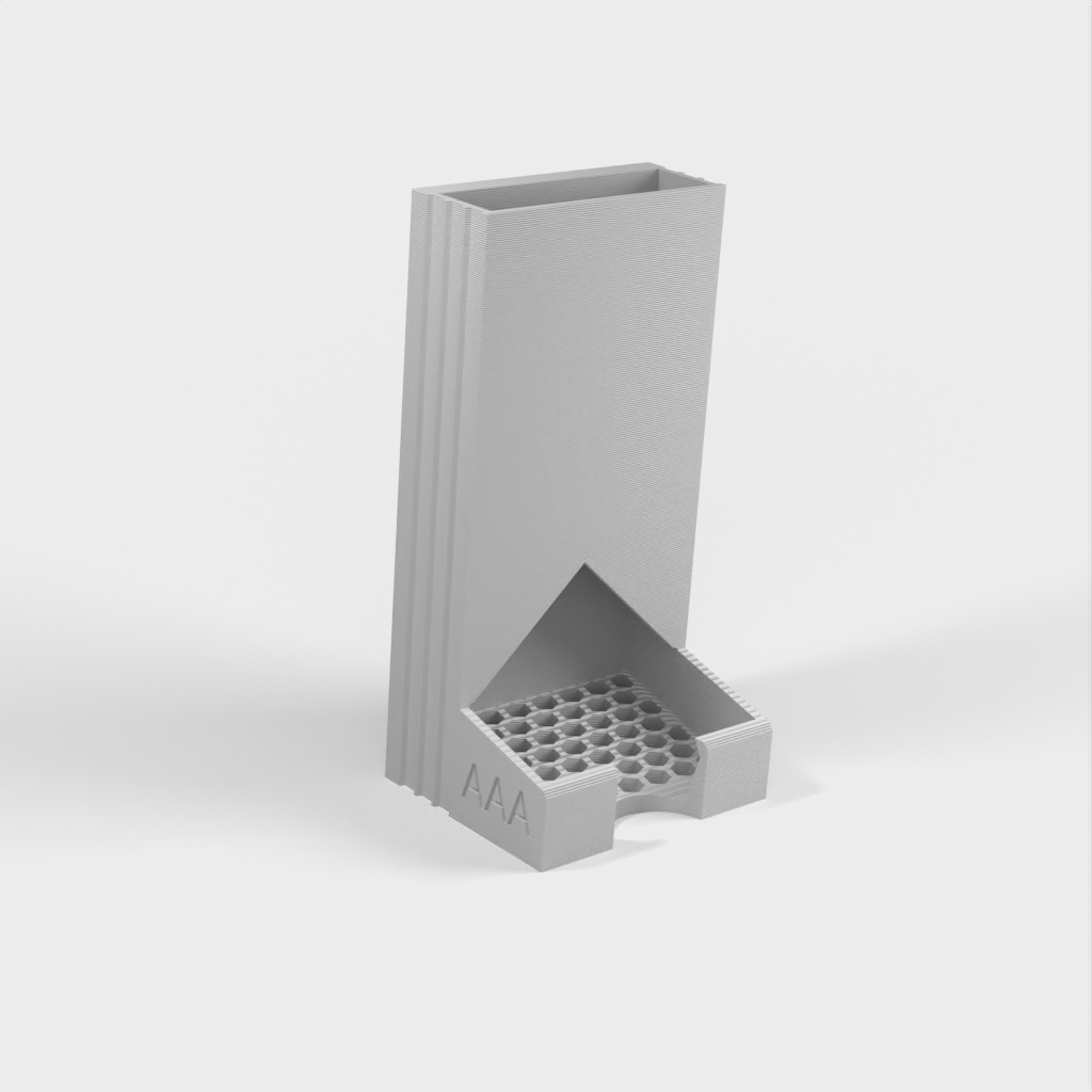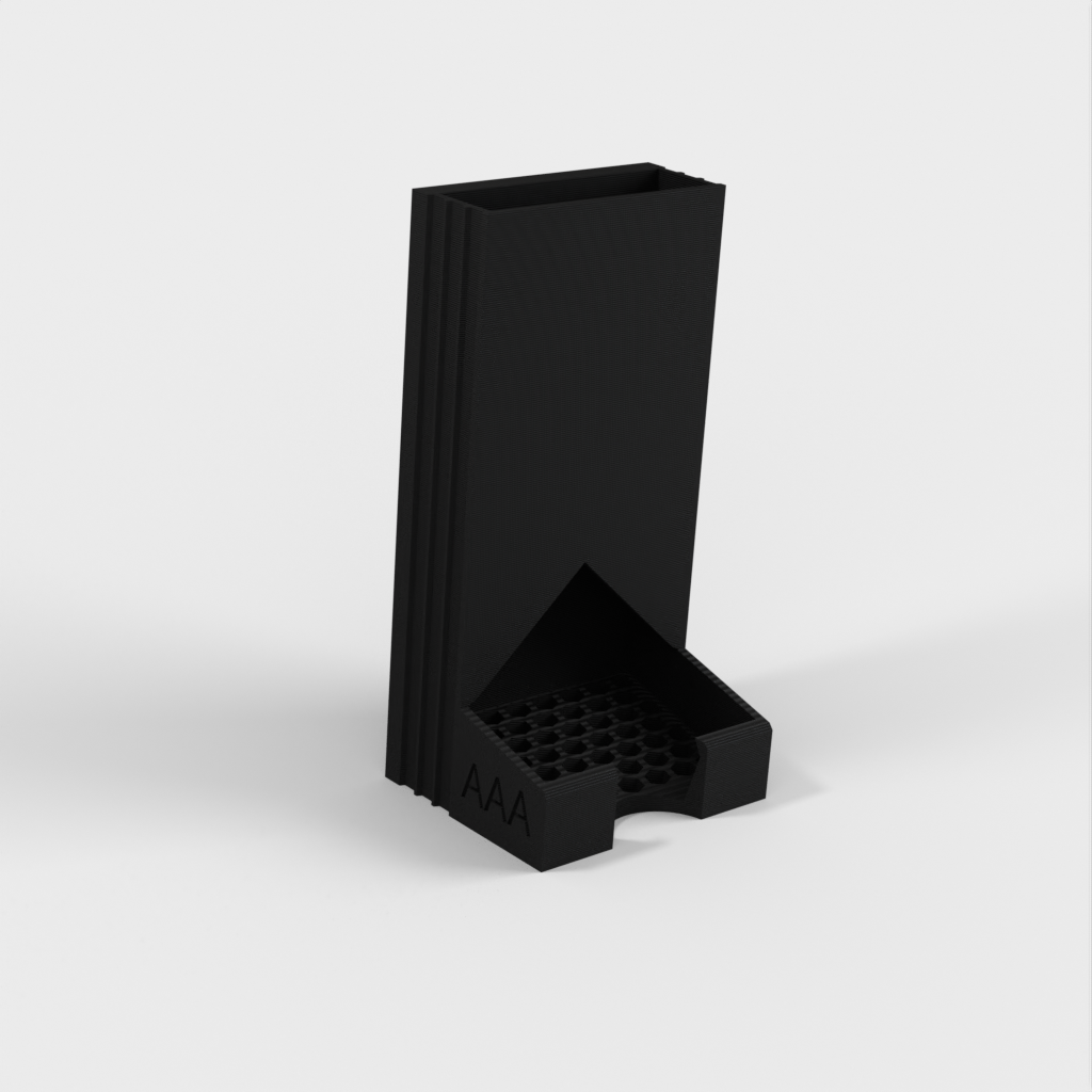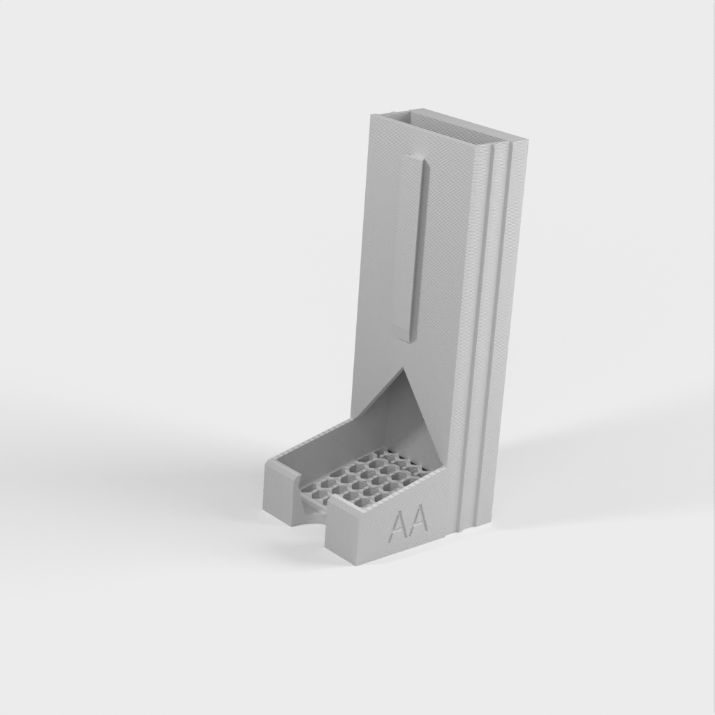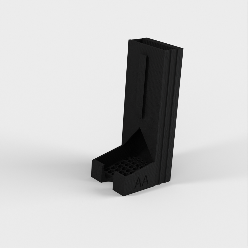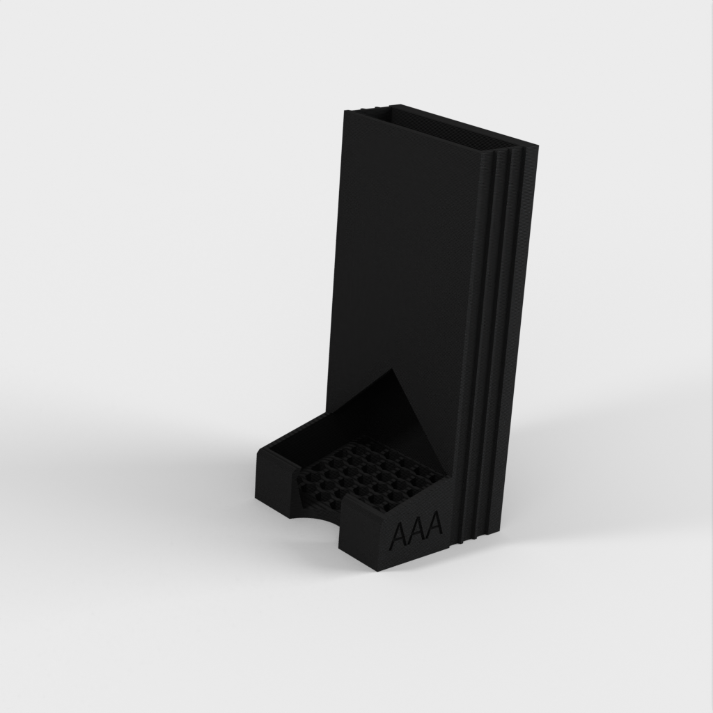 Θήκη μπαταριών για μπαταρίες AA και AAA. Οι θήκες μπορούν να συναρμολογηθούν και είναι διαθέσιμη μια επιτοίχια βάση στήριξης. Είναι ένα πρακτικό και ευρύχωρο σύστημα για την αποθήκευση των μπαταριών σας και διατηρεί το χώρο σας οργανωμένο και τακτοποιημένο.