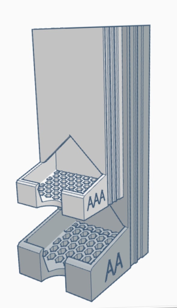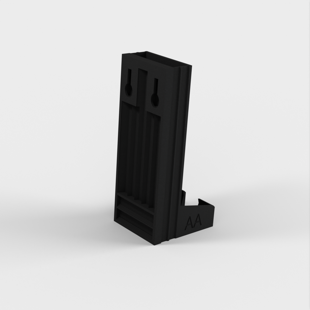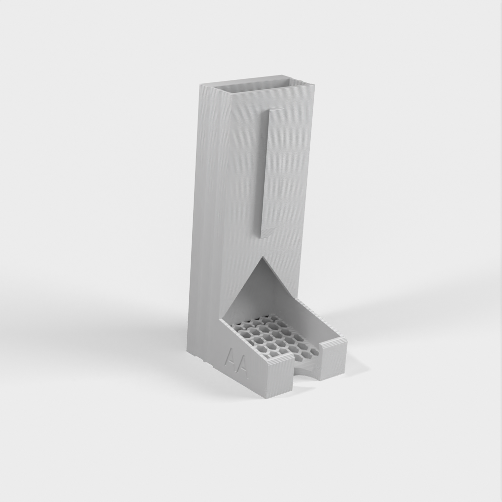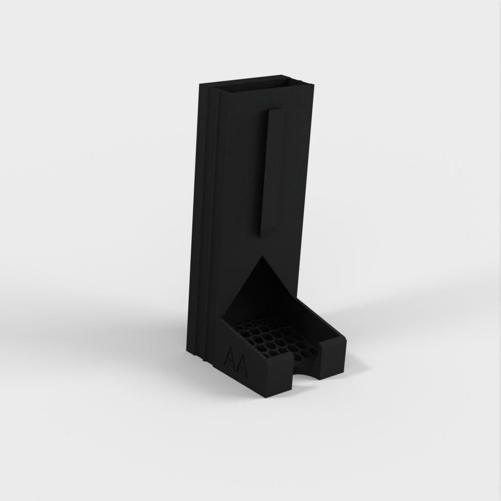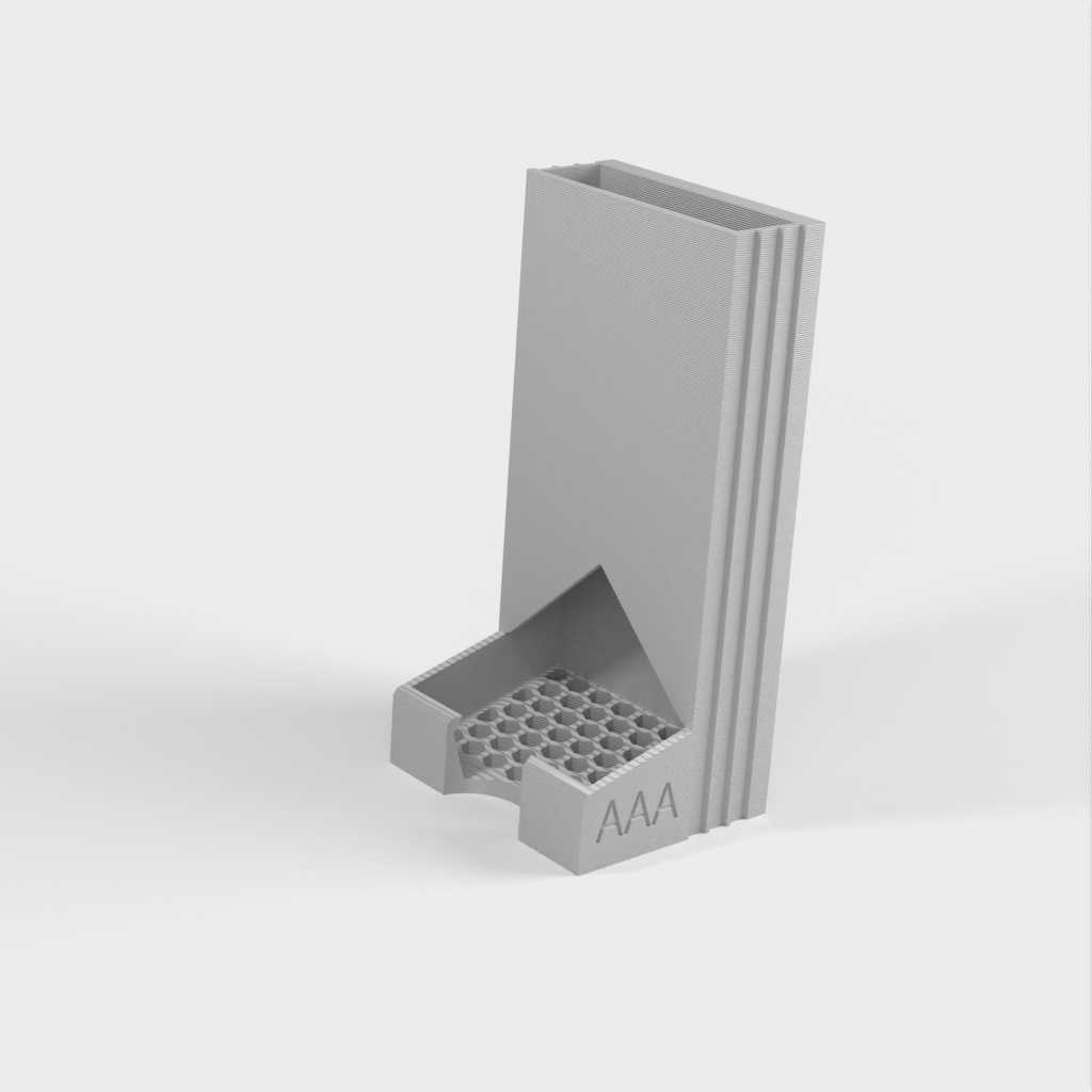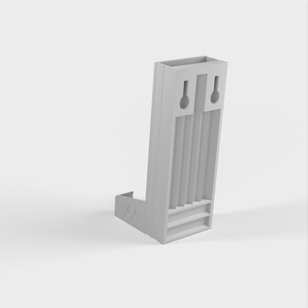 Θήκη μπαταριών για μπαταρίες AA και AAA. Οι θήκες μπορούν να συναρμολογηθούν και είναι διαθέσιμη μια επιτοίχια βάση στήριξης. Είναι ένα πρακτικό και ευρύχωρο σύστημα για την αποθήκευση των μπαταριών σας και διατηρεί το χώρο σας οργανωμένο και τακτοποιημένο.