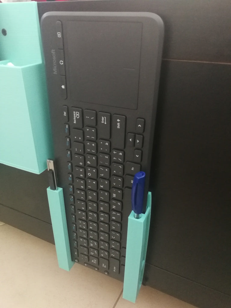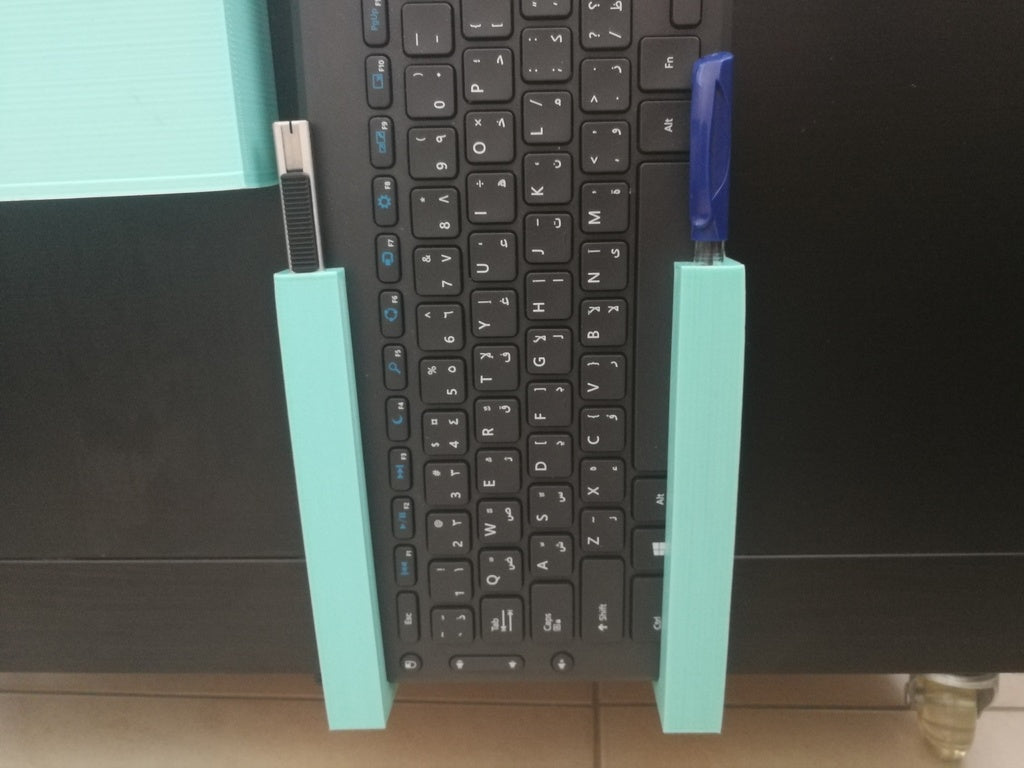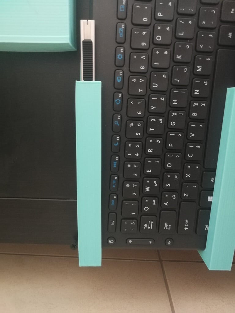 Είναι μια εκτύπωση δύο τμημάτων, ώστε να μπορείτε να την προσαρμόσετε ώστε να ταιριάζει σε οποιοδήποτε μέγεθος πληκτρολογίου. Λάβετε υπόψη ότι τα δύο μέρη δεν είναι συμμετρικά. η μία πλευρά είναι πιο φαρδιά από την άλλη για να φιλοξενήσει το καμπύλο σχήμα του πληκτρολογίου. Μπορείτε προαιρετικά να το εισαγάγετε σε οποιαδήποτε εφαρμογή τρισδιάστατου σχεδιασμού για να το προσαρμόσετε στις ανάγκες σας.