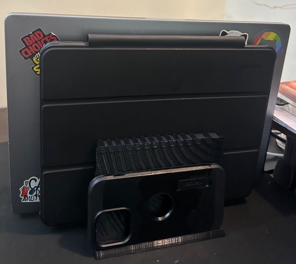 Αυτή η ευέλικτη κάθετη βάση έχει σχεδιαστεί για να βελτιστοποιεί τον χώρο εργασίας σας διατηρώντας τις συσκευές σας οργανωμένες και εύκολα προσβάσιμες. Μπορεί να φιλοξενήσει έναν φορητό υπολογιστή 16", ένα iPad 12,9", καθώς και το iPhone ή ένα πληκτρολόγιο σας, απελευθερώνοντας πολύτιμο χώρο στο γραφείο. Η βάση είναι εύκαμπτη και μπορεί να μετατραπεί για να συγκρατεί το iPad σας σε όρθια θέση, ιδανική για παράδειγμα για τηλεδιασκέψεις ή προβολή περιεχομένου. Υποστηρίζει μια σειρά από δημοφιλείς συσκευές, συμπεριλαμβανομένων των προϊόντων Apple, και λειτουργεί ως μια πρακτική βάση ipad που συμβάλλει σε ένα τακτοποιημένο και λειτουργικό περιβάλλον.