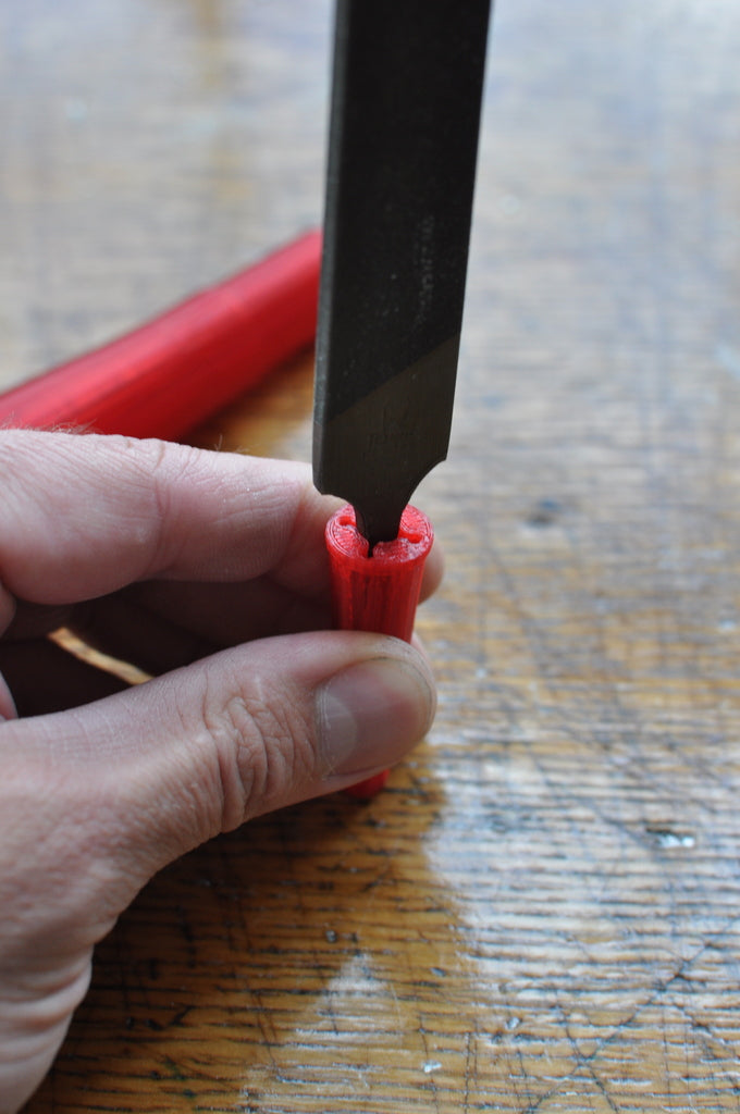 Αυτή είναι μια λαβή αρχείου για μεταλλικά αρχεία. Με την πάροδο του χρόνου απέκτησα πολλές λίμες και τώρα ήρθε η ώρα να τις οργανώσω έτσι ώστε να έχουν όλες λαβές και να μπορούν να κρεμαστούν σε έναν πίνακα εργαλείων. Η λαβή χρησιμοποιεί ένα κωνικό ένθετο που μπορεί να προσαρτηθεί στη λίμα και στη συνέχεια η λαβή μπορεί να προσαρτηθεί πάνω από το ένθετο και τη λίμα. Έχω προσθέσει μια τρύπα στο τρέχον σχέδιο και έχω κλιμακώσει τη λαβή ώστε να υπάρχει μια ολόκληρη σειρά μεγεθών λαβής για διαφορετικά μεγέθη αρχείων. Το κιτ θα προστεθεί σύντομα εδώ.