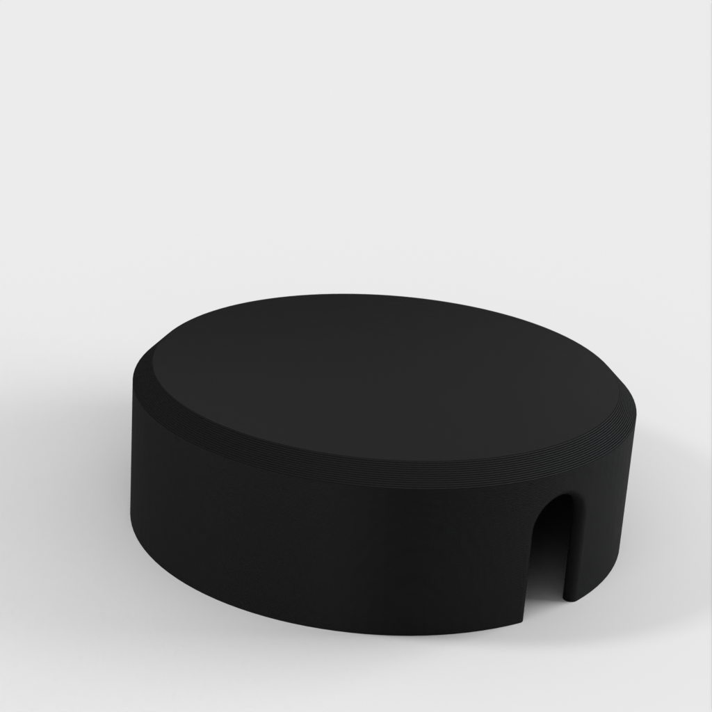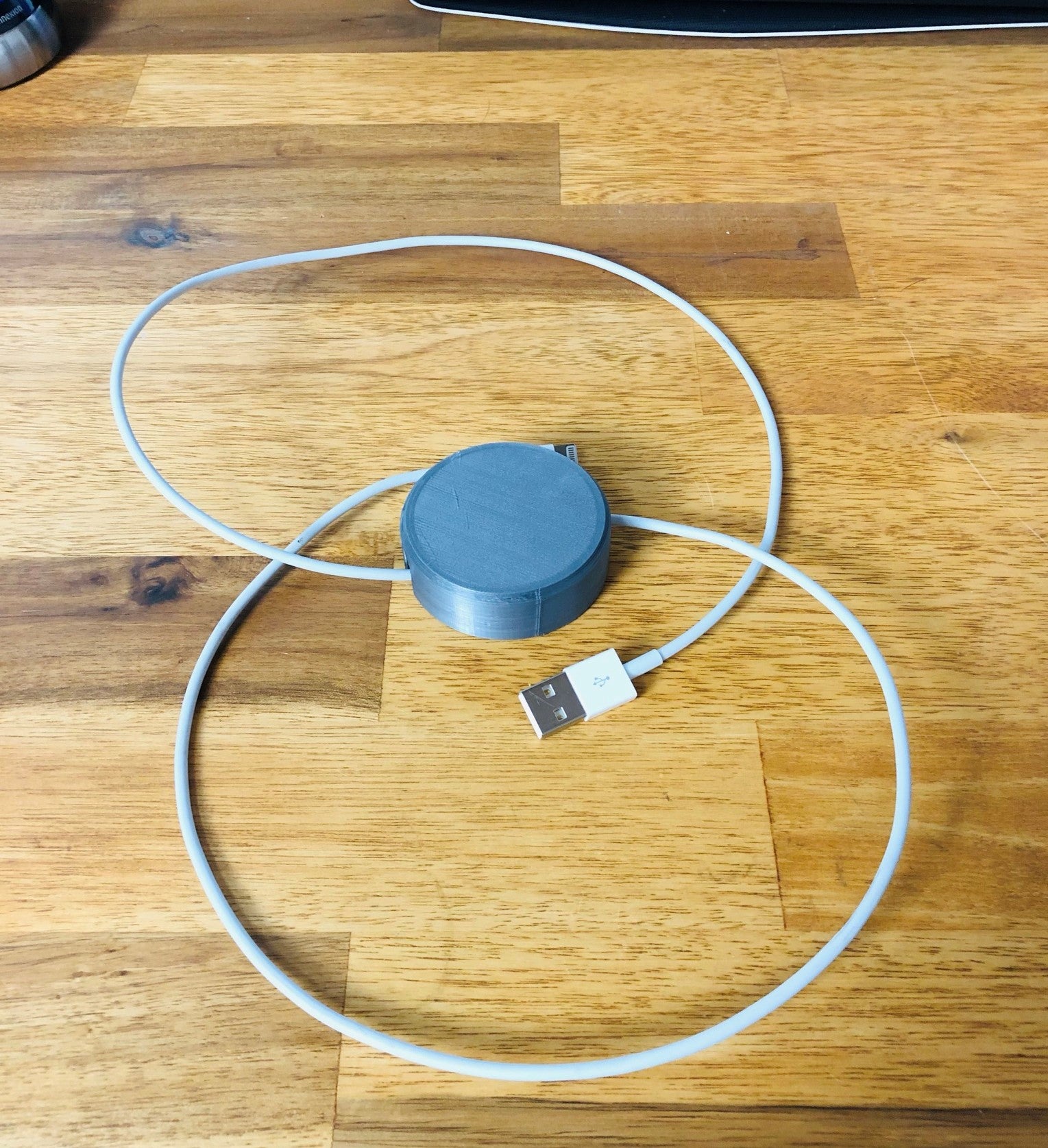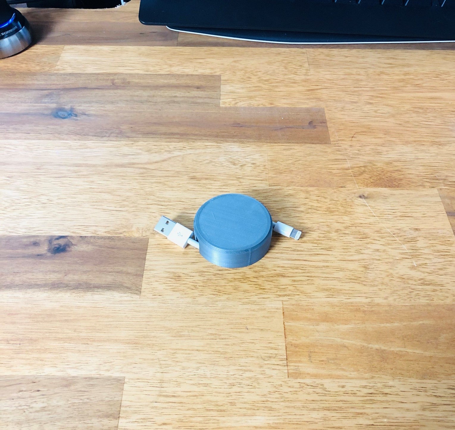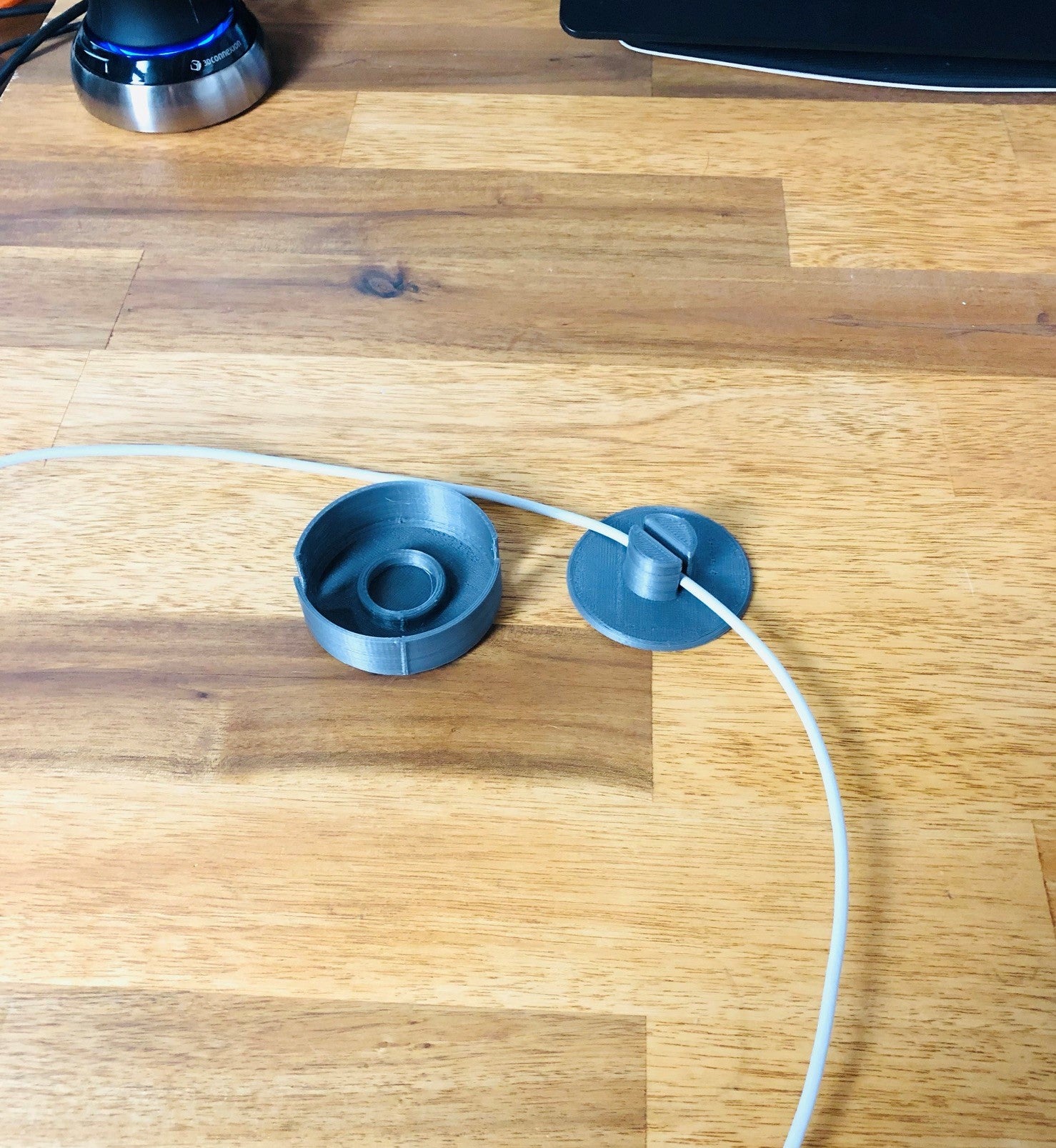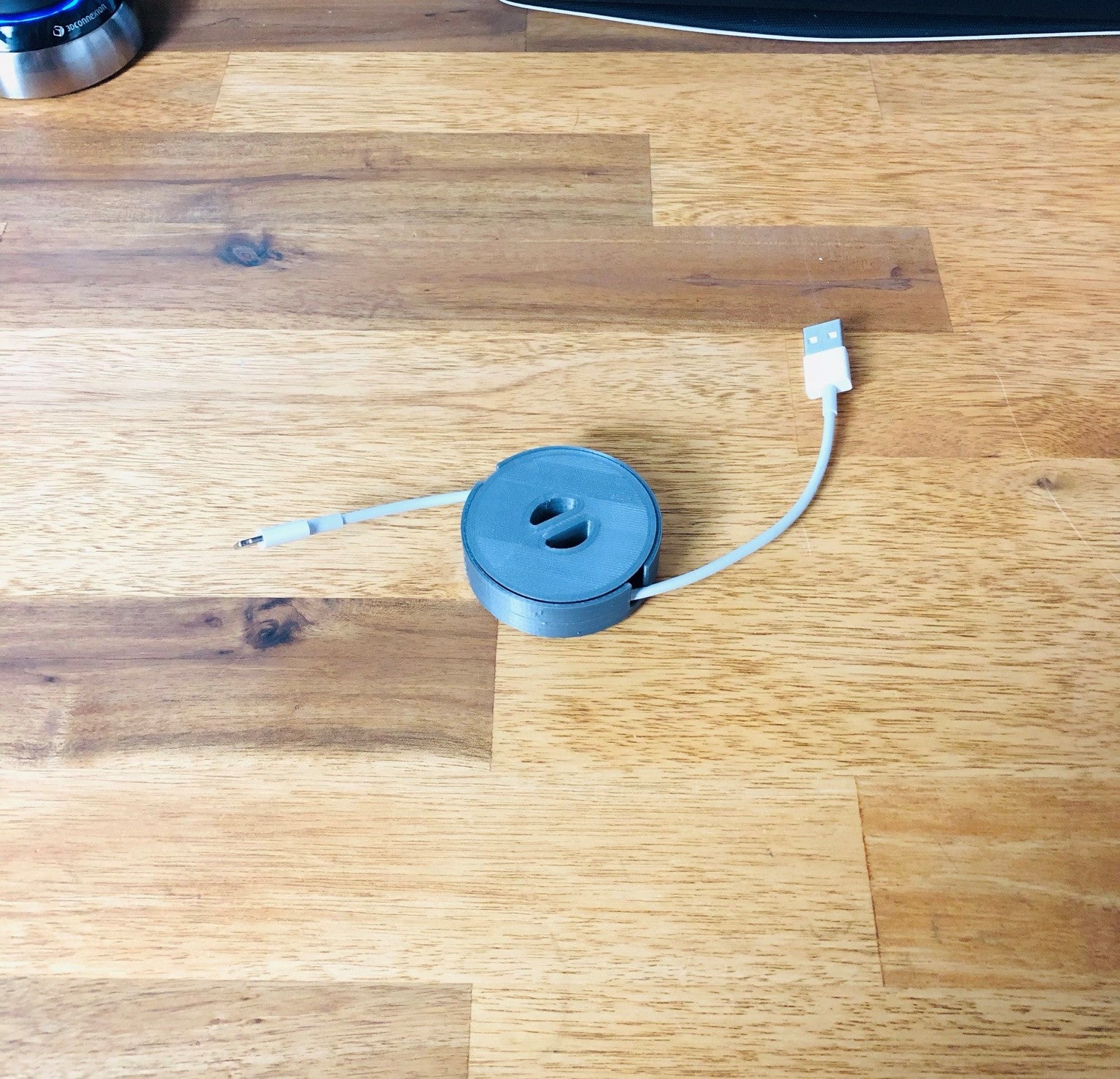 Αυτή είναι μια θήκη για την αποθήκευση των περιττών καλωδίων γύρω από το σταθμό εργασίας σας ή μπορείτε να τη χρησιμοποιήσετε για να αποθηκεύσετε τα ακουστικά σας εν κινήσει. Διαθέτει μια απλή κατασκευή που κουμπώνει μαζί. Υπάρχει ένα αυλάκι στο επάνω κομμάτι, στο οποίο θα κουμπώσει το κάτω κομμάτι. Εισάγετε το καλώδιο στην υποδοχή του κάτω κομματιού, ευθυγραμμίστε το πάνω κομμάτι με το κάτω κομμάτι, πιέστε τα μαζί μέχρι να κουμπώσουν. Περιστρέψτε το κάτω κομμάτι χρησιμοποιώντας τις δακτυλοειδείς γλωττίδες στο πίσω μέρος του για να τυλίξετε το καλώδιο. Τραβήξτε τα άκρα του καλωδίου για να επεκτείνετε το καλώδιο.