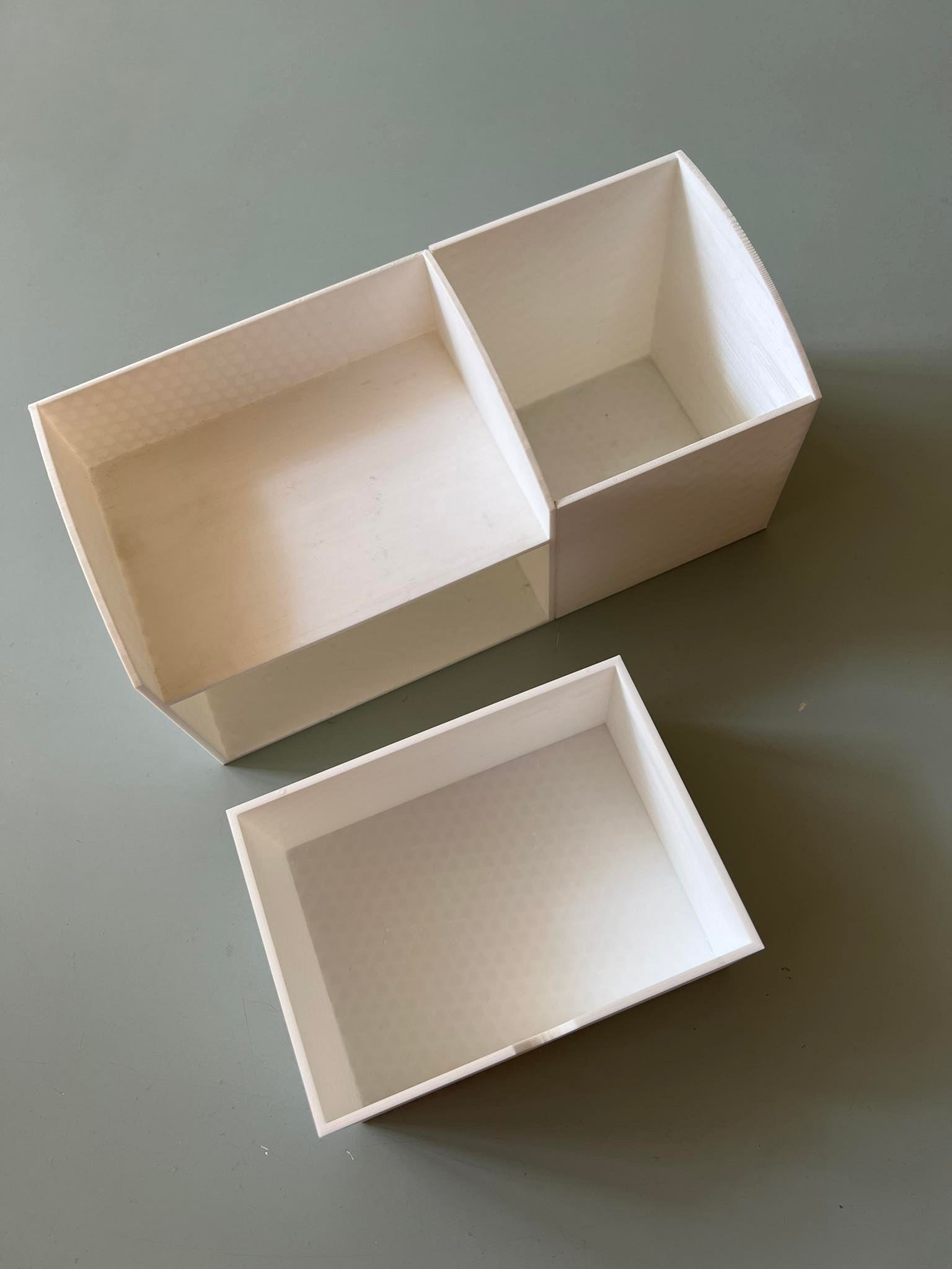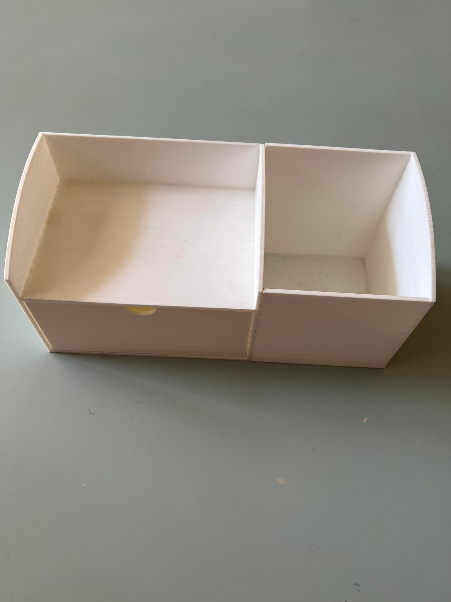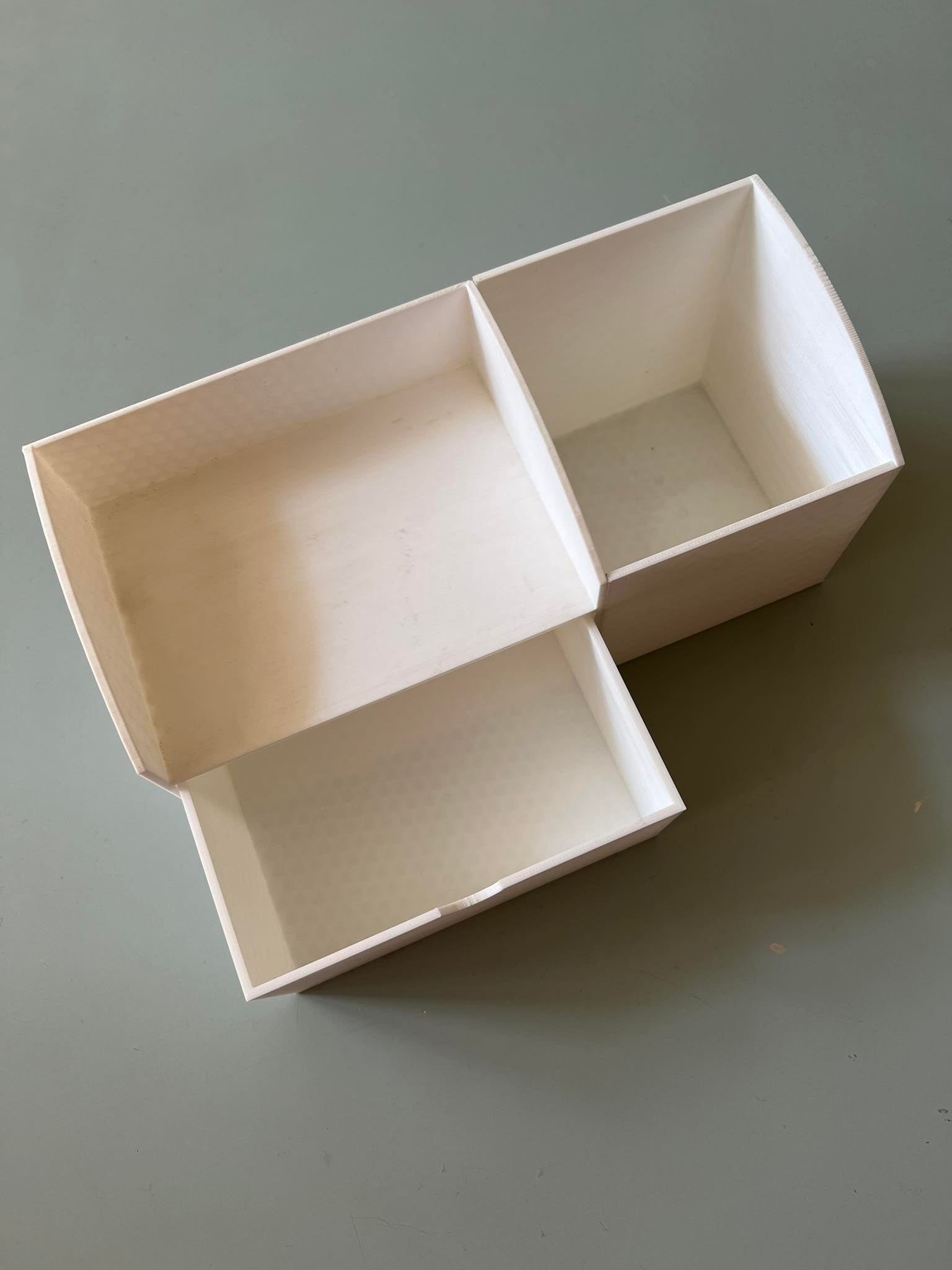 Αυτό είναι ένα οργανωτικό για το μπάνιο τυπωμένο με PLA. Εκτυπώθηκε με ύψος στρώματος 0,2 mm, ακροφύσιο 0,4 mm, 20% πλήρωση και δεν χρειάζονται στηρίγματα. Κάθε μέρος εκτυπώνεται ξεχωριστά και στη συνέχεια συγκολλάται μεταξύ τους. Εκτυπώνεται στην Ender 3v2.