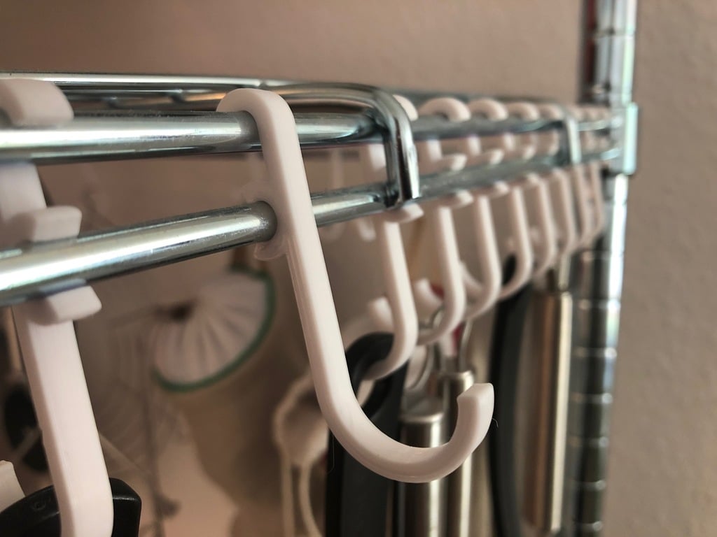 Ένας ρυθμιζόμενος γάντζος που ταιριάζει απόλυτα με τις ράβδους του ράφι IKEA Omar. Το χρησιμοποιούμε για να κρεμάμε τα σκεύη της κουζίνας μας. Ο γάντζος έχει σφιχτή εφαρμογή, ώστε να μην πέφτει ή να μετακινείται πολύ όταν κρεμάτε ή παίρνετε αντικείμενα.