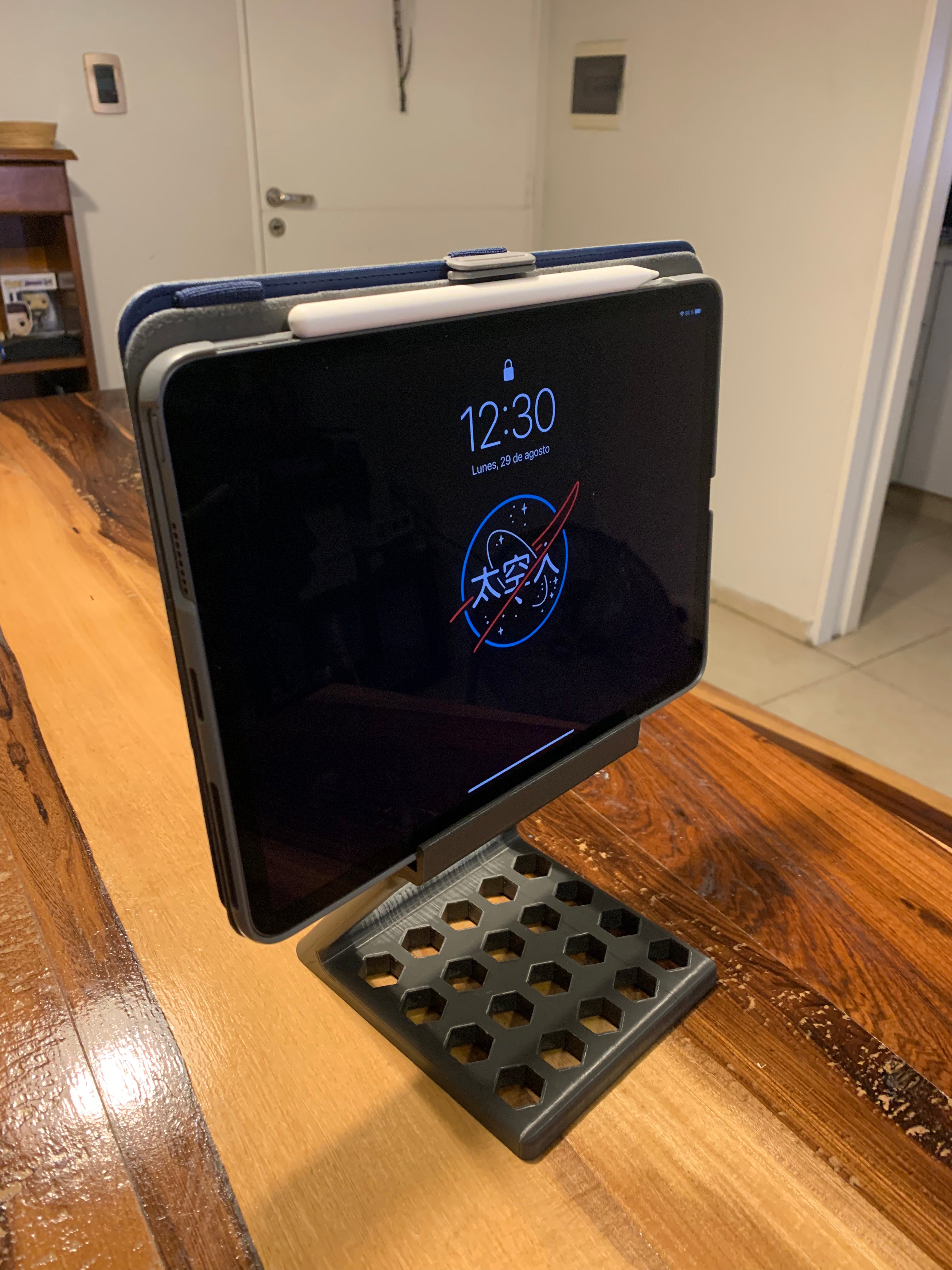 Μια θήκη iPad κατασκευασμένη με ακρίβεια. Μπορεί να ρυθμιστεί στο τέλειο σημείο θέασης για εύκολη ανάγνωση, περιήγηση ή βιντεοκλήσεις. Ο σχεδιασμός του είναι απλός και ακολουθεί τη μινιμαλιστική αισθητική του iPad.