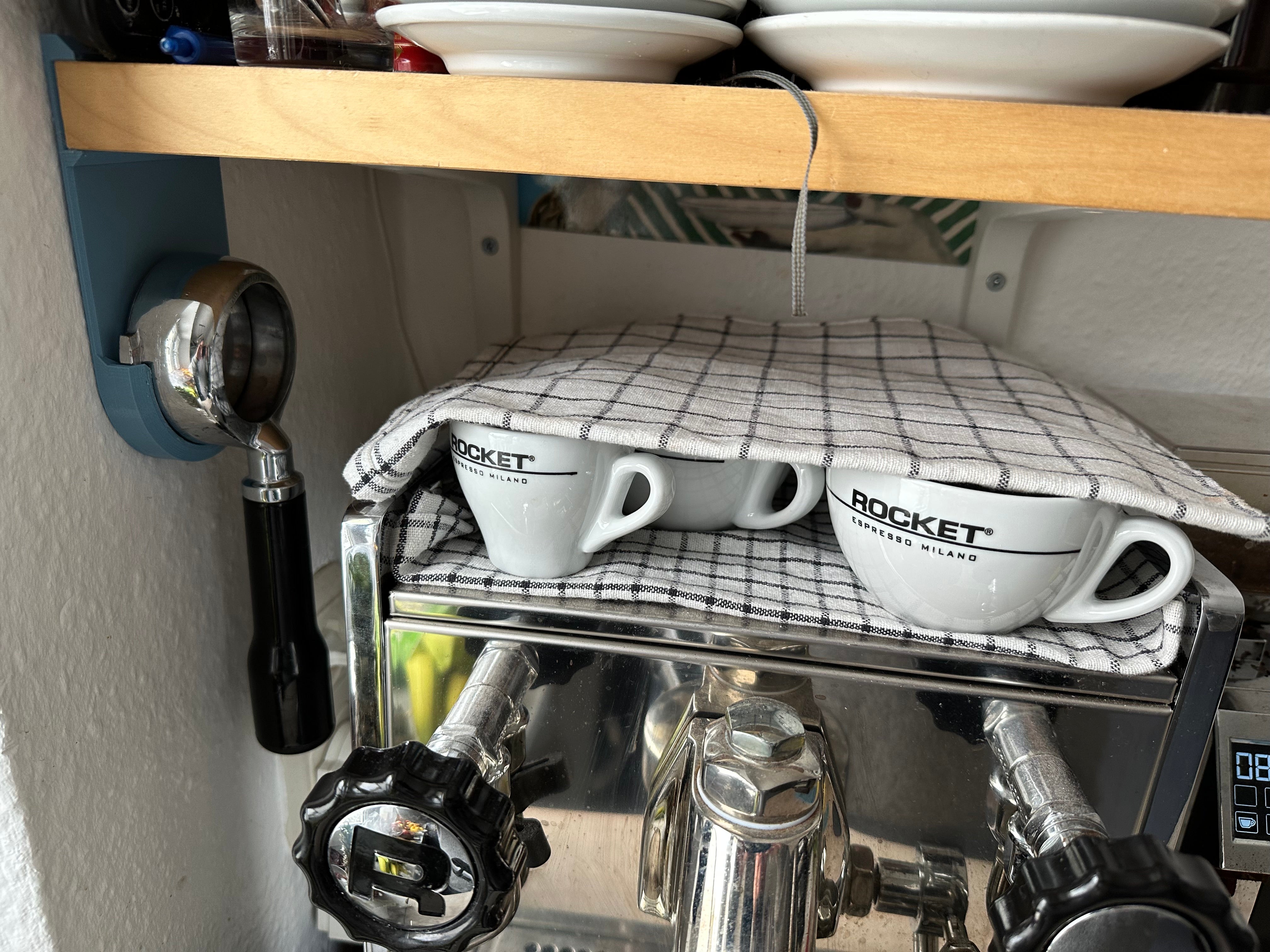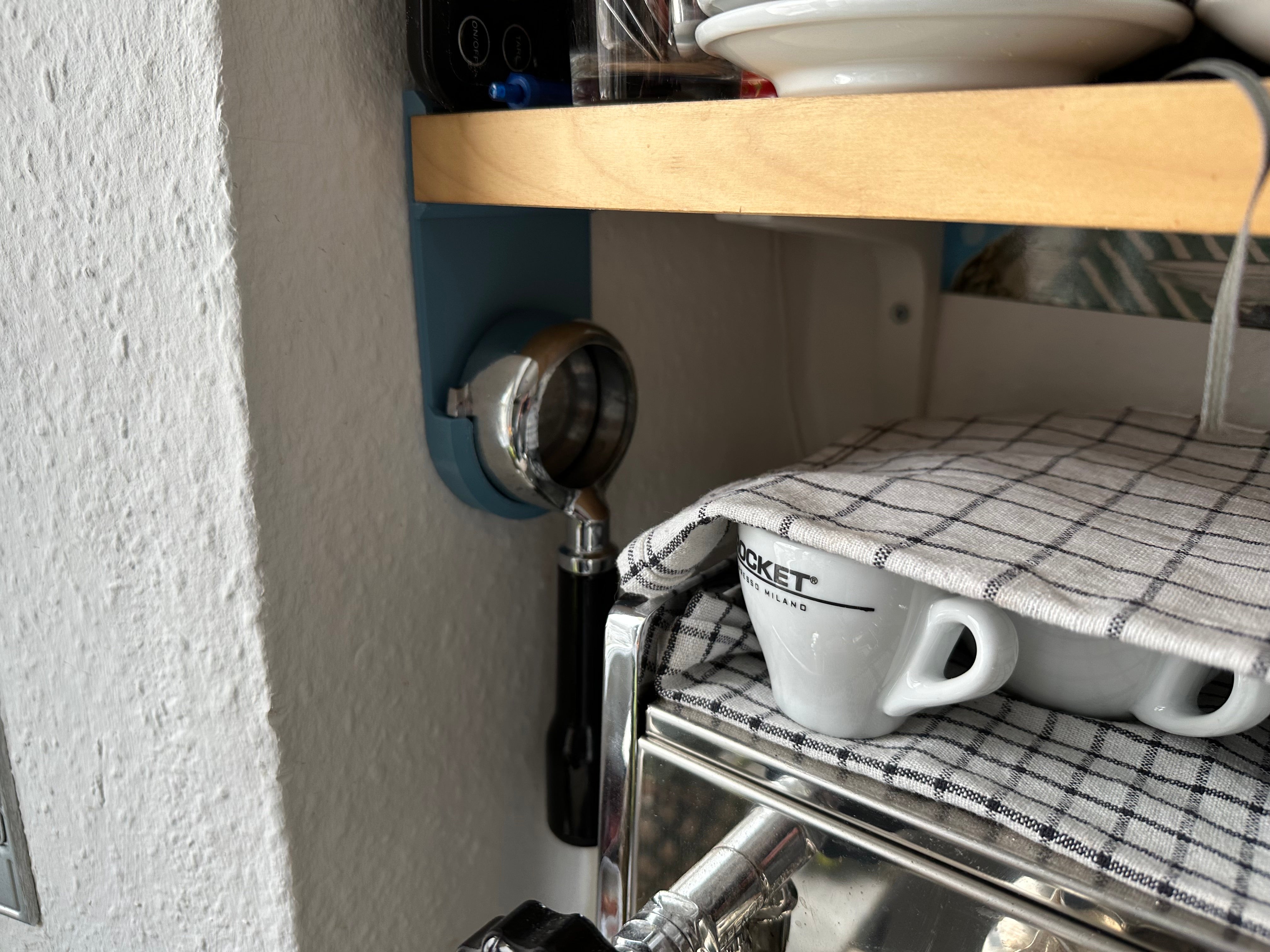 Αυτή η θήκη portafilter χωρίς βίδες προσφέρει μια πρακτική λύση για την αποθήκευση των portafilter σας. Σχεδιασμένη ειδικά για portafilter Rocket Mozzafiato, αυτή η θήκη σάς επιτρέπει να κρεμάτε διακριτικά τα αξεσουάρ espresso σας κάτω από ένα ράφι, απελευθερώνοντας πολύτιμο χώρο στον πάγκο στην κουζίνα σας. Ως ιδανικό αξεσουάρ Rocket Espresso, επιτρέπει την οργανωμένη αποθήκευση των portafilter Rocket Espresso σας. Ο απλός και λειτουργικός σχεδιασμός καθιστά δυνατή την τοποθέτηση πολλών κατόχων ο ένας δίπλα στον άλλο για μια βελτιωμένη ρύθμιση καφέ.