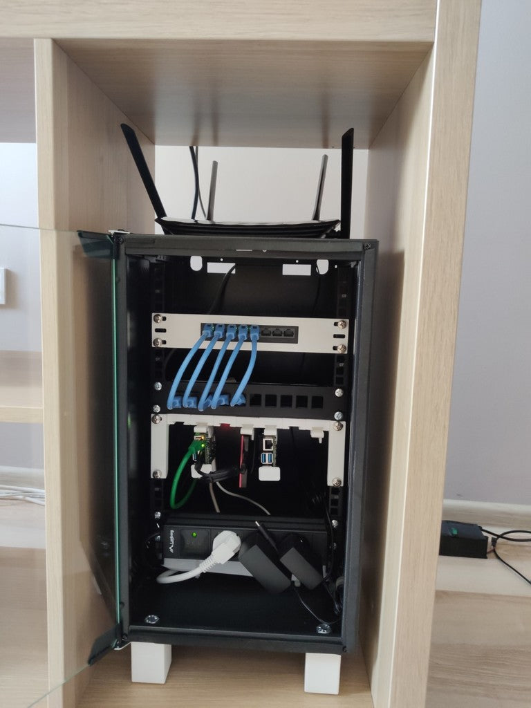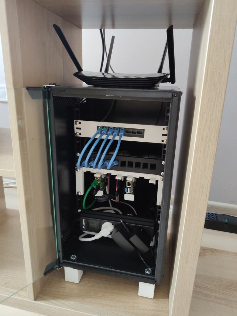 Ένα ράφι διακομιστή για το σπίτι σχεδιασμένο για χρήση με περίβλημα 10". Κατασκευασμένο με ειδικά ανυψωτικά πόδια για να χωράει σε ένα ράφι IKEA Kallax. Ιδανικό για την οργάνωση των μονάδων διακομιστή σας ή των ρυθμίσεων Raspberry Pi.