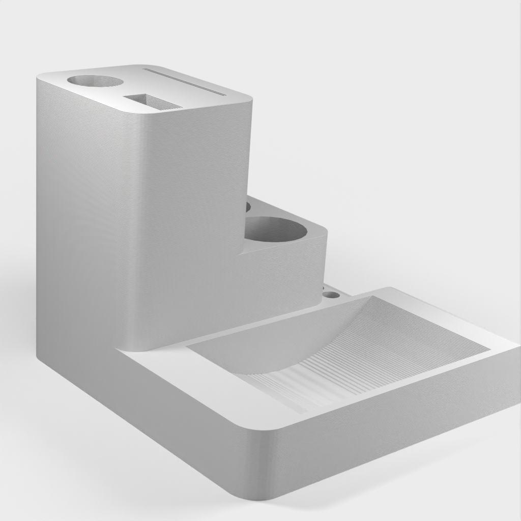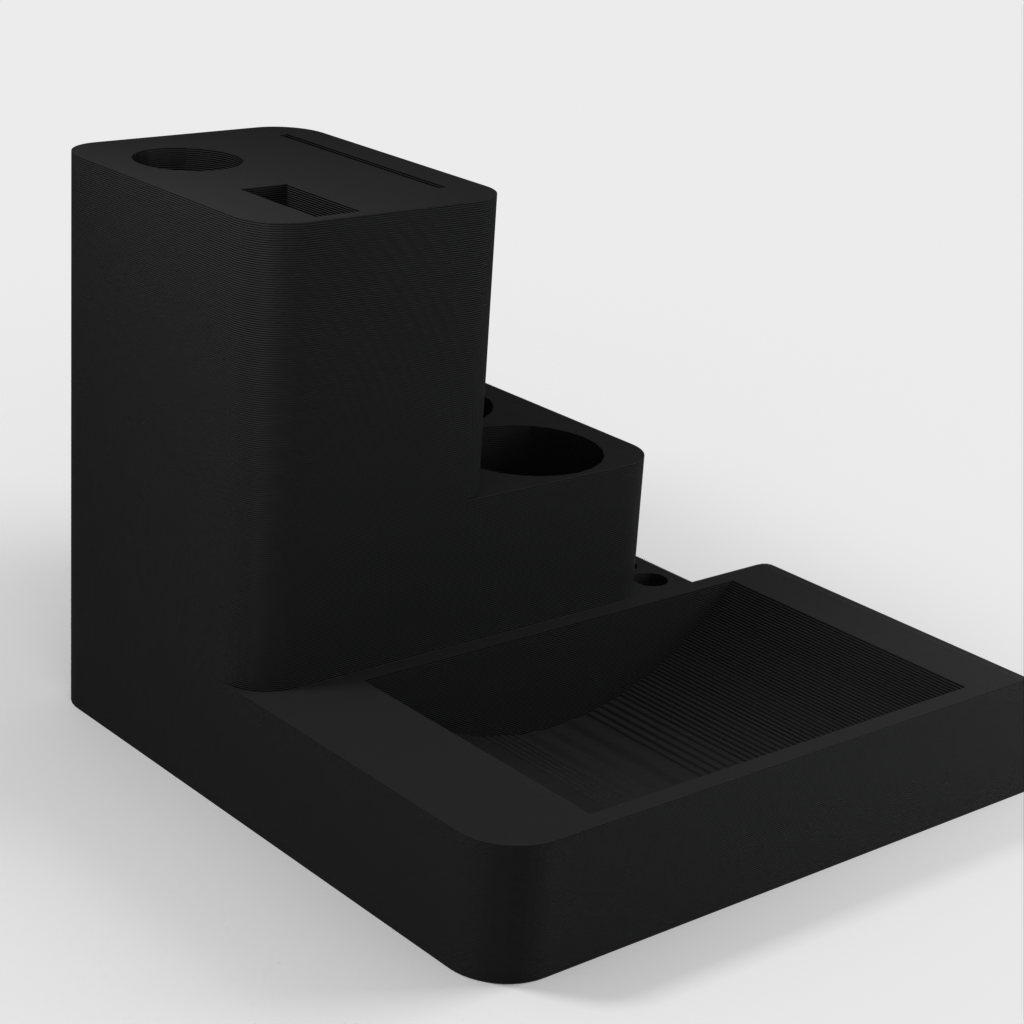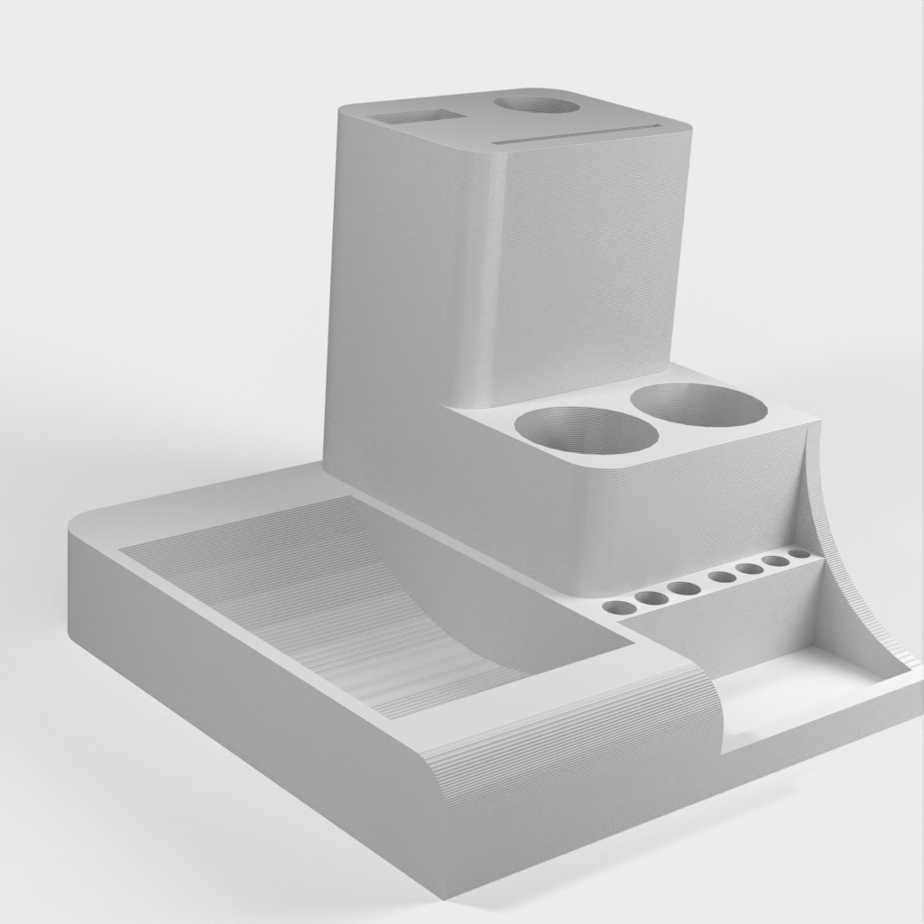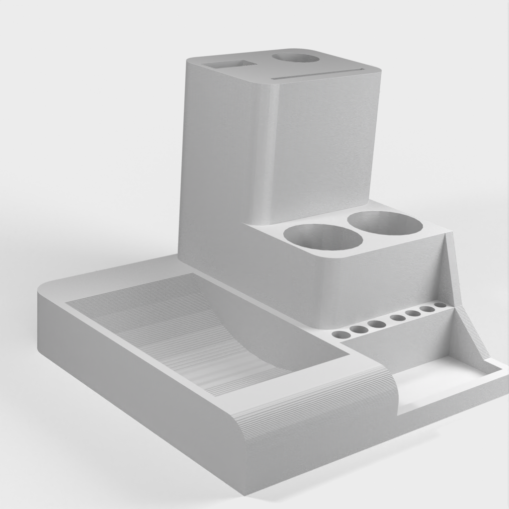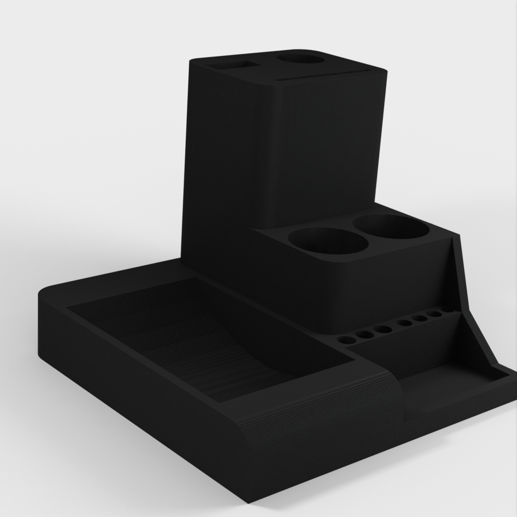 Θήκη εργαλείων για εκτυπωτή 3D, σχεδιασμένη για να κρατάτε τα εργαλεία σας οργανωμένα. Ικανή να συγκρατήσει ένα ευρύ φάσμα αντικειμένων, από φακό, ράβδο κόλλας ή κόλλα krazy glue, μέχρι ξύστρα πλάτους 38,2 mm. Επιπλέον, η θήκη εργαλείων είναι συμβατή τόσο με τον εκτυπωτή 3D Monoprice Mini Select όσο και με τον εκτυπωτή Prusa I3, καθιστώντας την μια ευέλικτη προσθήκη σε κάθε εγκατάσταση εκτυπωτή 3D. Το συνολικό αποτύπωμα είναι 110mm x 110mm, υποδεικνύοντας ότι δεν θα καταλαμβάνει πολύ χώρο.