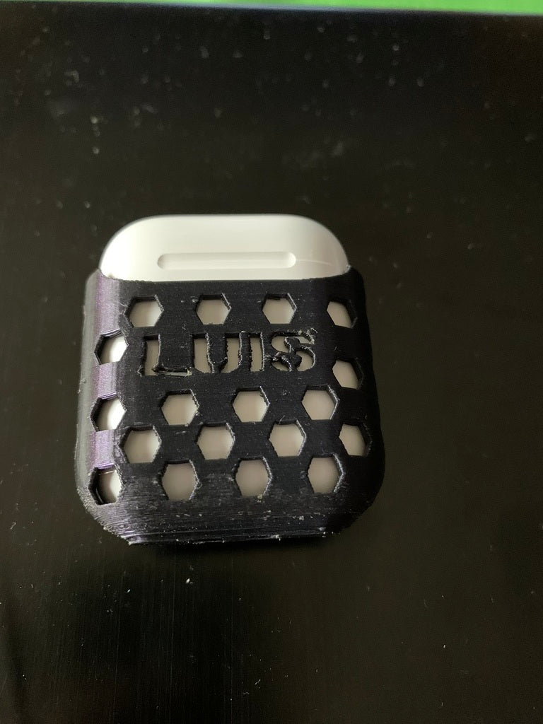 Μια εξαγωνική θήκη για τα Airpods v2. Υπάρχουν δύο εκδόσεις του αρχείου, με και χωρίς θέση για να εισάγετε το όνομά σας.