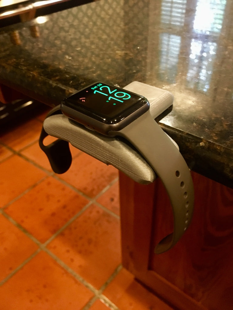 Μια απλή βάση φόρτισης για το Apple Watch που προσαρμόζεται στα περισσότερα τραπέζια. Λειτουργεί με όλα τα Apple Watches. Υπάρχει ένα κανάλι για την έξοδο του καλωδίου στο πίσω μέρος κάτω από το ρολόι.