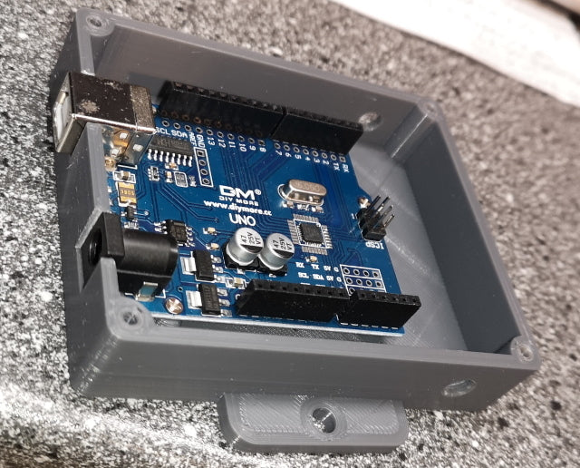 Υπάρχει άφθονος χώρος στο εσωτερικό της θήκης για καλώδια και άλλα μικρά αντικείμενα. Χρησιμοποιήστε μικρές αυτοκόλλητες βίδες για το arduino και το καπάκι.