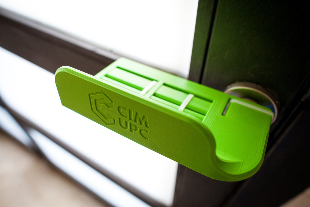 Το άνοιγμα πόρτας με βραχίονα - COVID-19 είναι ένα αυτόνομο άνοιγμα πόρτας που έχει σχεδιαστεί για να μειώνει τον κίνδυνο μόλυνσης από το COVID-19. Αυτή η συσκευή μπορεί εύκολα να κατασκευαστεί με έναν επιτραπέζιο εκτυπωτή 3D και να συναρμολογηθεί με μόλις 3 δεματικά καλωδίων. Το Arm Door Opener μπορεί να προσαρμοστεί για διαφορετικά χερούλια πόρτας και είναι εύκολο στη συναρμολόγηση. Διατίθεται τόσο για αριστερά όσο και για δεξιά ανοιγόμενες πόρτες και μπορεί να εγκατασταθεί σε λιγότερο από ένα λεπτό. Το προϊόν αυτό είναι ιδανικό για δημόσιους χώρους σε κτίρια, νοσοκομεία, κέντρα εργασίας ή καταστήματα όπου υπάρχει υψηλός κίνδυνος μετάδοσης ιών μέσω των χειρολαβών των θυρών.
