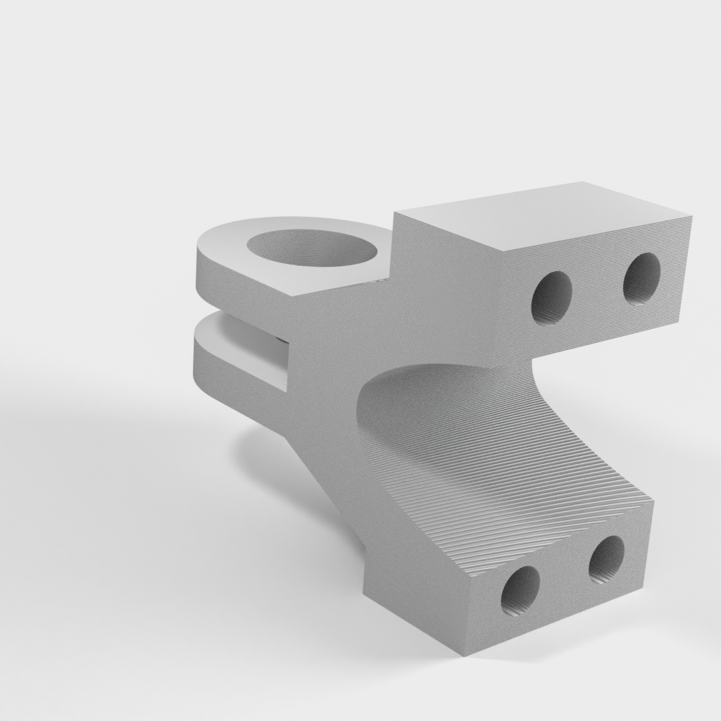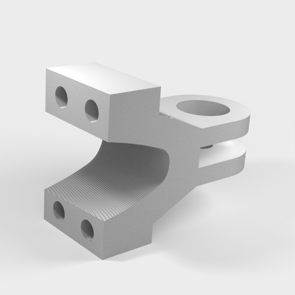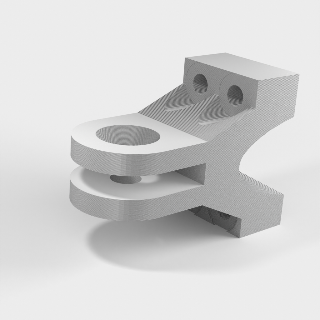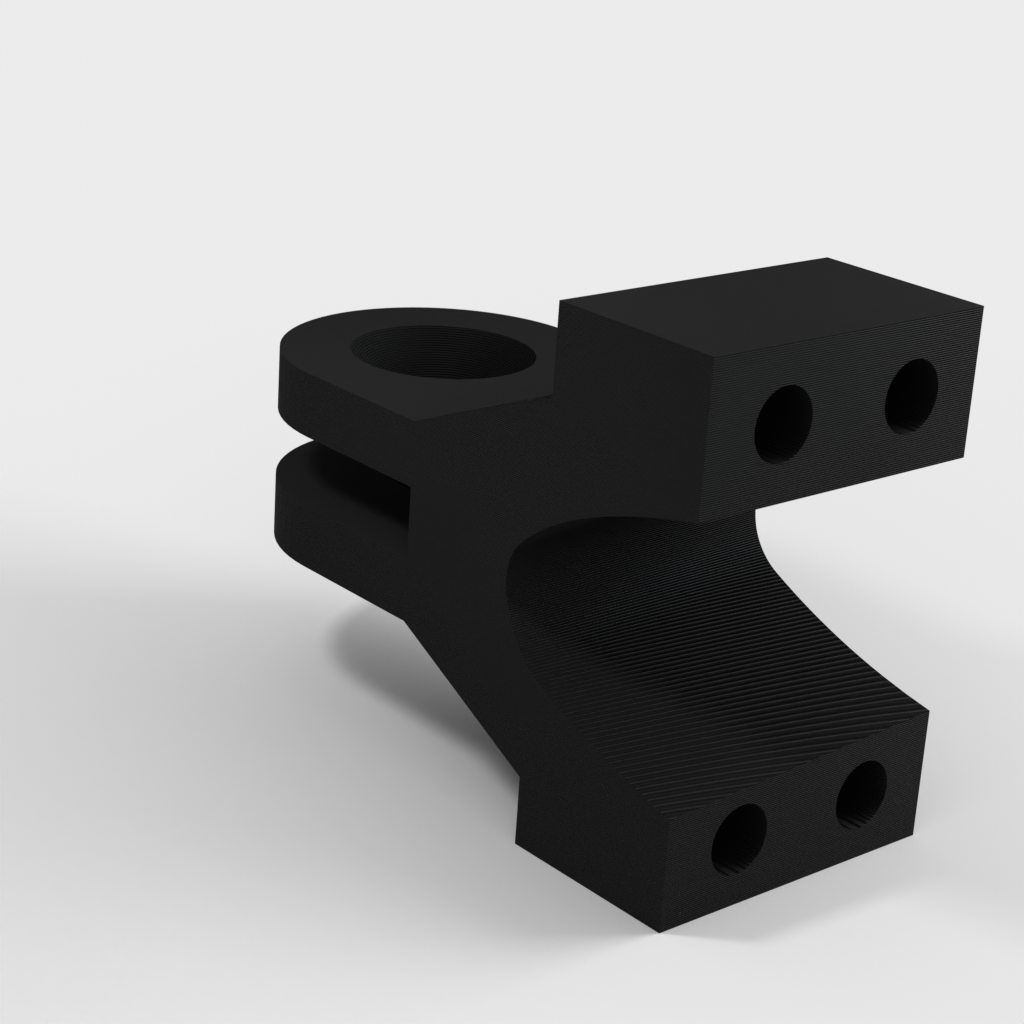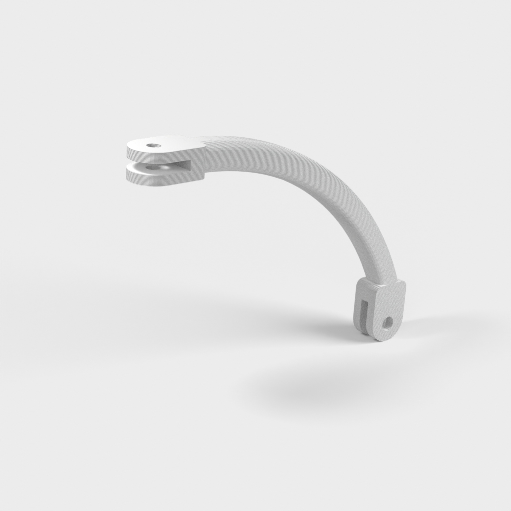Το τμήμα του βραχίονα (mount-3.stl) πρέπει να θερμανθεί με ένα πιστόλι θερμότητας ή ένα πιστολάκι μαλλιών, ώστε να γίνει εύπλαστο και η κάμερα να μπορεί να τοποθετηθεί με τον καλύτερο δυνατό τρόπο. Αυτό δίνει στον βραχίονα καλύτερη σταθερότητα, καθώς διαφορετικά δεν θα ήταν δυνατό να τον εκτυπώσετε επίπεδο και τα στρώματα δεν θα ήταν συνεχόμενα.