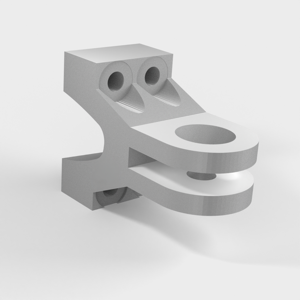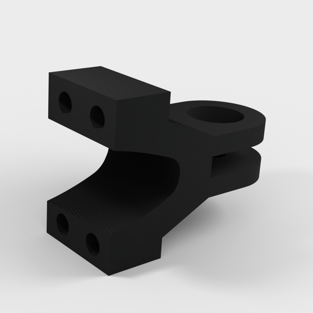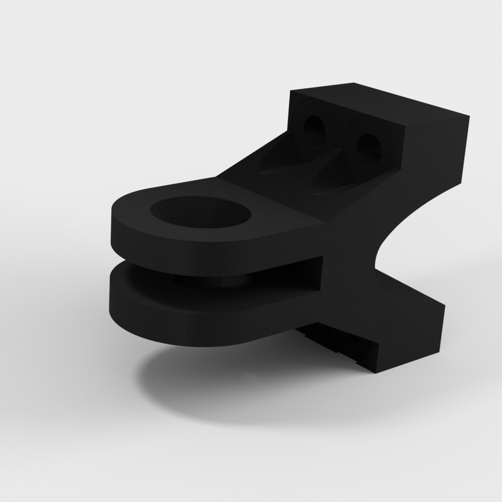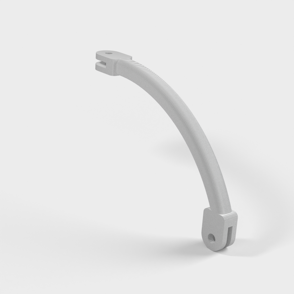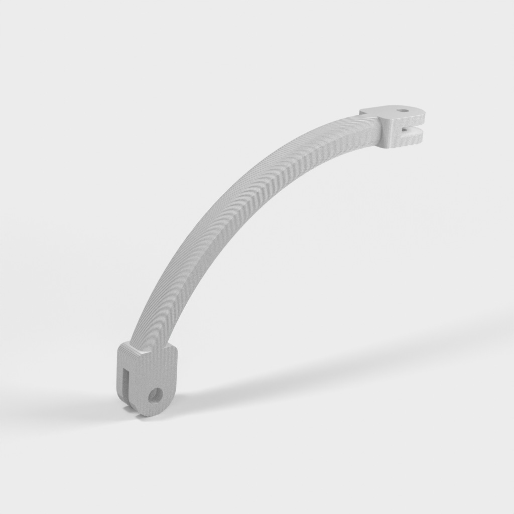 Το τμήμα του βραχίονα (mount-3.stl) πρέπει να θερμανθεί με ένα πιστόλι θερμότητας ή ένα πιστολάκι μαλλιών, ώστε να γίνει εύπλαστο και η κάμερα να μπορεί να τοποθετηθεί με τον καλύτερο δυνατό τρόπο. Αυτό δίνει στον βραχίονα καλύτερη σταθερότητα, καθώς διαφορετικά δεν θα ήταν δυνατό να τον εκτυπώσετε επίπεδο και τα στρώματα δεν θα ήταν συνεχόμενα.