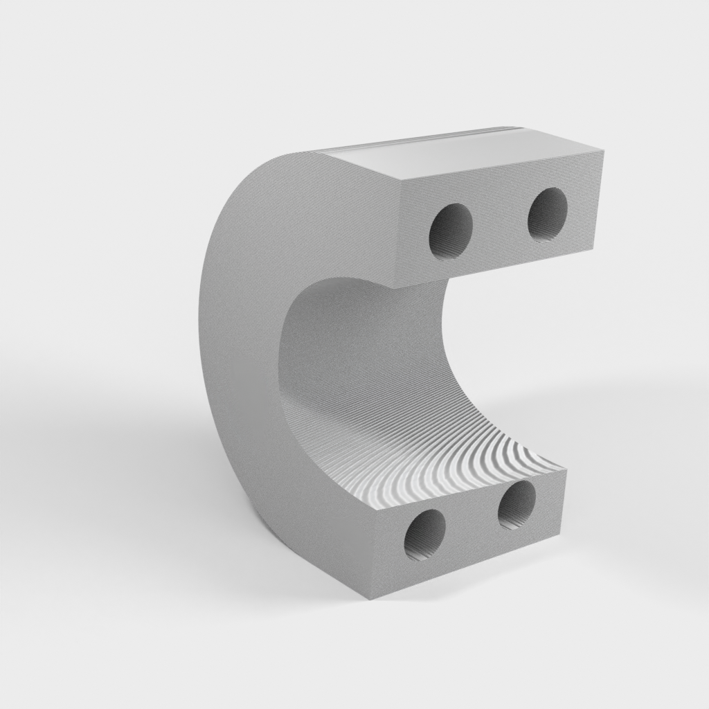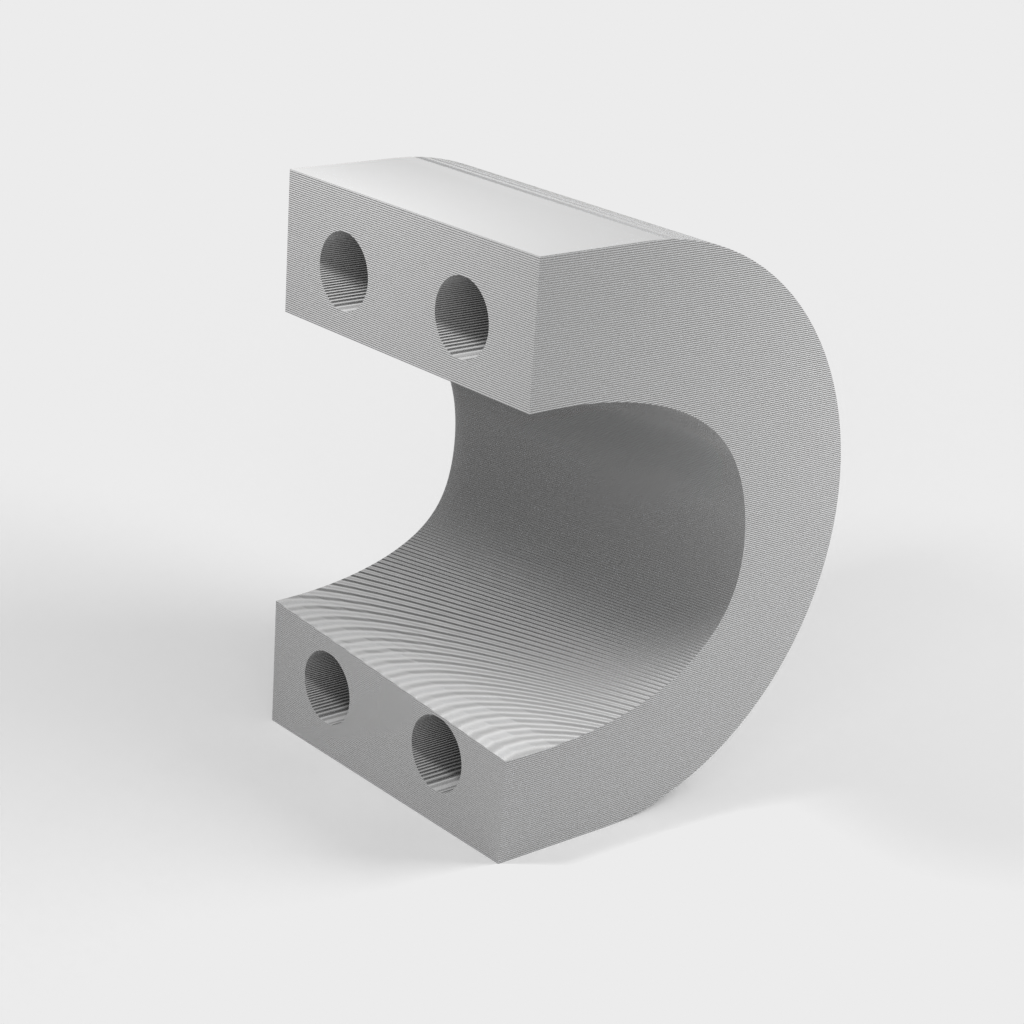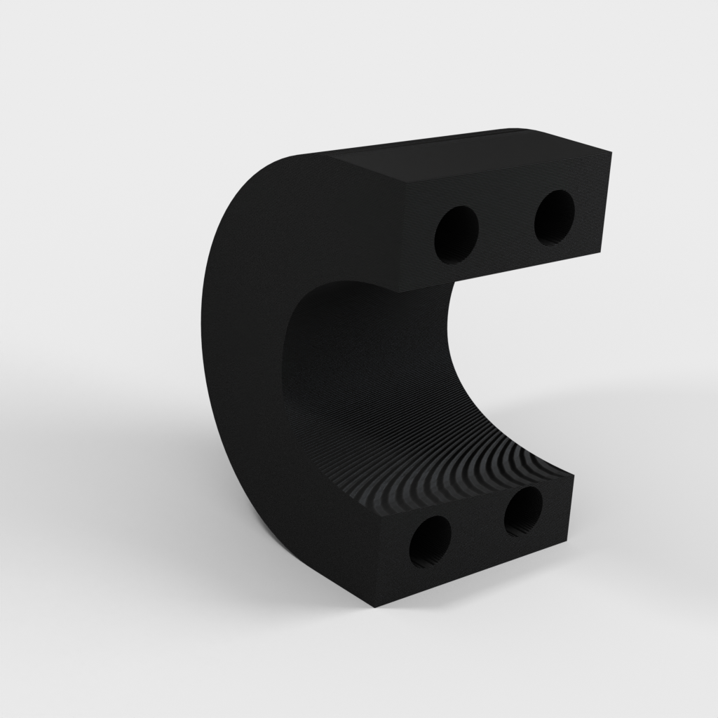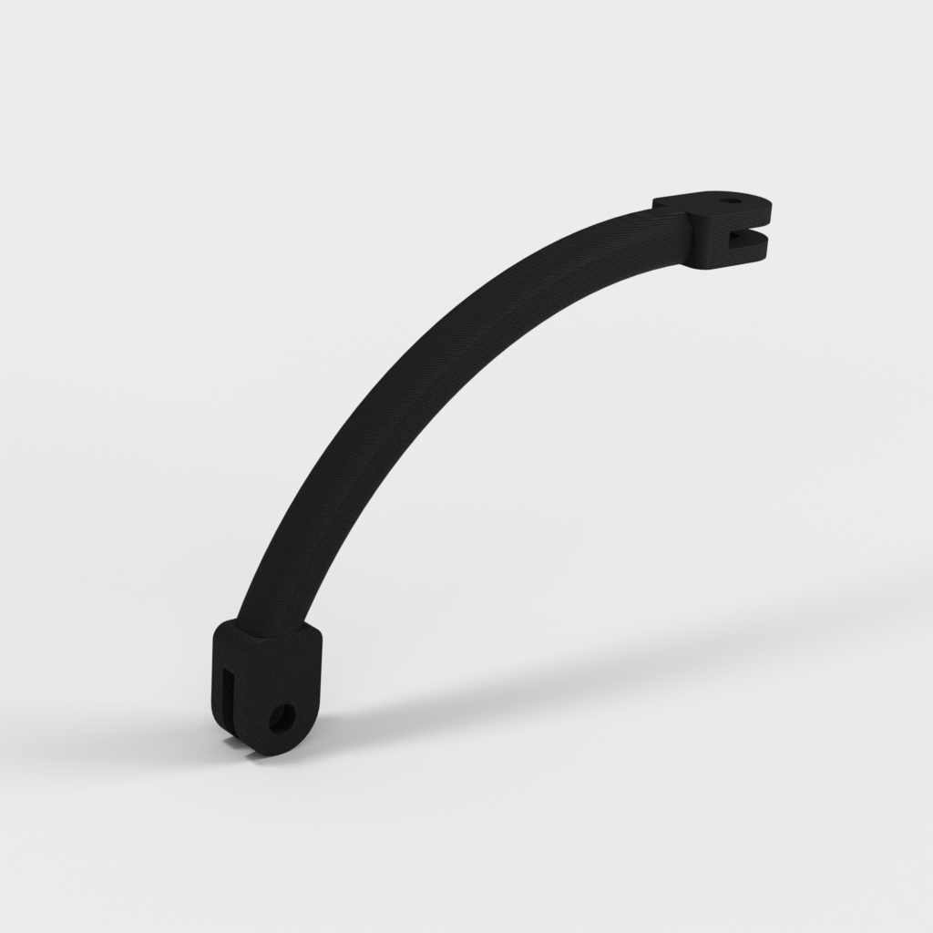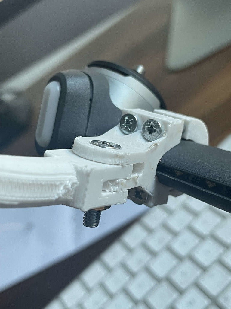 Το τμήμα του βραχίονα (mount-3.stl) πρέπει να θερμανθεί με ένα πιστόλι θερμότητας ή ένα πιστολάκι μαλλιών, ώστε να γίνει εύπλαστο και η κάμερα να μπορεί να τοποθετηθεί με τον καλύτερο δυνατό τρόπο. Αυτό δίνει στον βραχίονα καλύτερη σταθερότητα, καθώς διαφορετικά δεν θα ήταν δυνατό να τον εκτυπώσετε επίπεδο και τα στρώματα δεν θα ήταν συνεχόμενα.