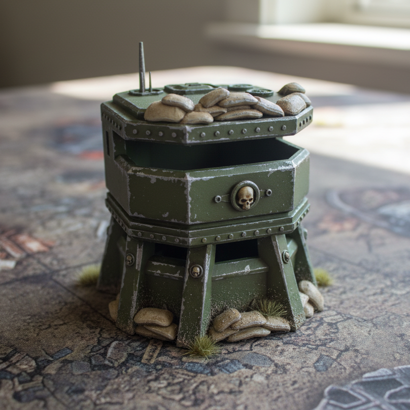 Αυτό το μοντέλο εδάφους Double Pillbox προσφέρει στις μονάδες σας μια στρατηγική θέση άμυνας σε grimdark επιτραπέζια πολεμικά παιχνίδια. Η λεπτομερής κατασκευή του ταιριάζει απόλυτα σε μετα-αποκαλυπτικά σενάρια, ενισχύοντας το βάθος και την ατμόσφαιρα των μαχών σας. Χρησιμοποιήστε το για να προστατεύσετε κρίσιμες θέσεις και να αποκτήσετε τακτικά πλεονεκτήματα έναντι του εχθρού.