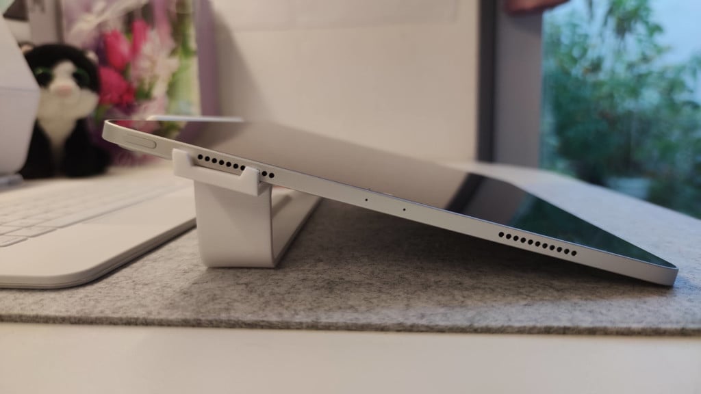 Η βάση είναι εξοπλισμένη με μια ακριβή εγκοπή για τα ηχεία, η οποία διασφαλίζει ότι ο ήχος παραμένει καθαρός και ανεμπόδιστος κατά τη χρήση. Ένας πιο άκαμπτος και φαρδύτερος πυθμένας συμβάλλει στη βελτιωμένη σταθερότητα, έτσι ώστε το tablet σας να κάθεται με ασφάλεια ακόμα και κατά τη διάρκεια έντονων δημιουργικών περιόδων λειτουργίας. Οι λοξές άκρες παρέχουν ένα λείο και άνετο σχέδιο.
