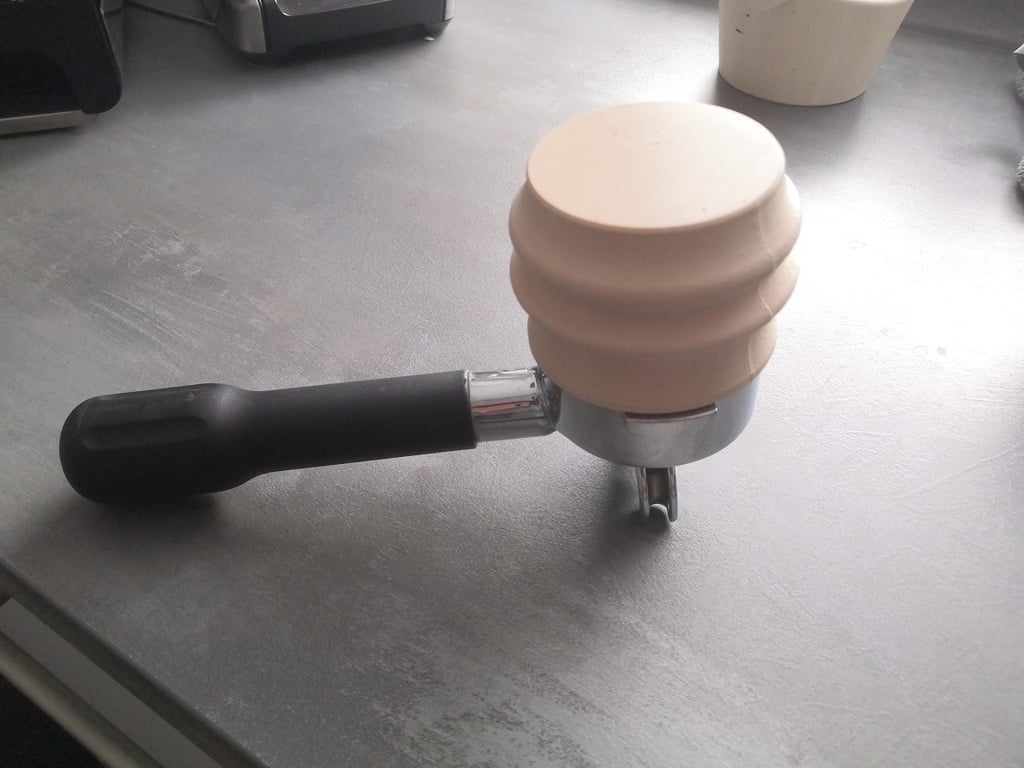 Μετά τη δοσολογία, το portafilter μπορεί να αναποδογυριστεί πάνω από το κύπελλο. Ένα έξυπνο χείλος γύρω από το κύπελλο αποτρέπει τη διαρροή καταλοίπων καφέ κατά την αναστροφή και τη μεταφορά. Ανακινώντας απαλά το κύπελλο και το portafilter μαζί, επιτυγχάνεται ομοιόμορφη κατανομή του καφέ στο φίλτρο, κάτι που είναι απαραίτητο για τη βέλτιστη εκχύλιση και ένα ισορροπημένο σφηνάκι εσπρέσο. Αυτή η απλή διαδικασία βελτιώνει τη ρουτίνα σας και συμβάλλει σε μια πιο συνεπή εμπειρία καφέ κάθε φορά. Για βέλτιστη χρήση και ανθεκτικότητα, συνιστάται η εκτύπωση του δοσομετρικού κυπέλλου σε PETG, ένα υλικό που αναγνωρίζεται για την ασφάλειά του στα τρόφιμα και την ικανότητά του να αντέχει στο πλύσιμο στο πλυντήριο πιάτων σε χαμηλές θερμοκρασίες.
