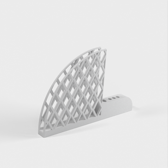 Φίλτρο καφέ και θήκη κουταλιού σχεδιασμένη για φίλτρα Hario V60. Διαθέτει μια μεγάλη τρύπα κουταλιού για να χωράει μια ελλειπτική λαβή 5mm x 10mm και τρεις μικρές τρύπες για να χωράει ένα κουτάλι 3mm x 6mm. Κάθε τρύπα έχει μετατόπιση 1 mm για να ταιριάζει με το χώρο. Το προϊόν ζυγίζει 67 γραμμάρια και χρειάζεται περίπου 13 ώρες για να εκτυπωθεί.