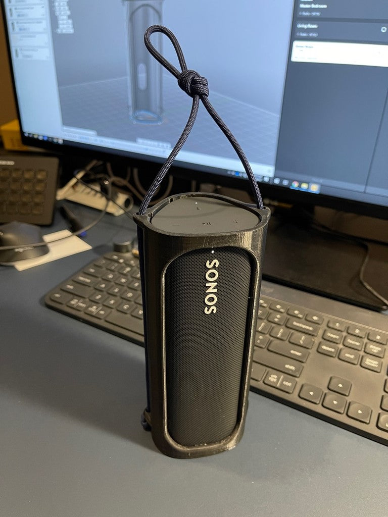 Μια θήκη Sonos Active με χώρο για την εισαγωγή MagSafe Magnets στην εκτύπωση. Αυτό επιτρέπει στον φορτιστή Apple MagSafe να ευθυγραμμιστεί και να συνδεθεί στη θήκη για να φορτίσει το Sonos Roam. Η προεξοχή έχει επίσης επανασχεδιαστεί, επομένως η υποστήριξη δεν είναι πλέον απαραίτητη.