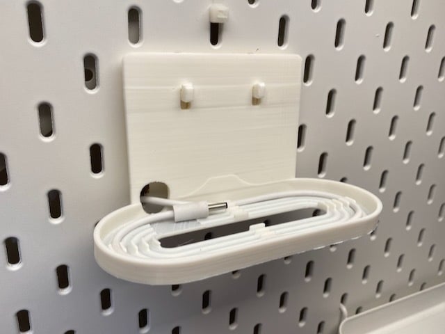 Απλή λύση τοποθέτησης για πλακέτες Nest / Google Home Hub για πλακέτες IKEA Skadis. Ο διανομέας βρίσκεται όσο το δυνατόν πιο κοντά στην πλακέτα και το καλώδιο μπορεί να δρομολογηθεί μέσω μιας από τις υπάρχουσες υποδοχές του Skadis, πράγμα που σημαίνει ότι δεν φαίνονται καλώδια. Απαιτεί δύο γενικούς γάντζους για μια τακτοποιημένη εγκατάσταση.