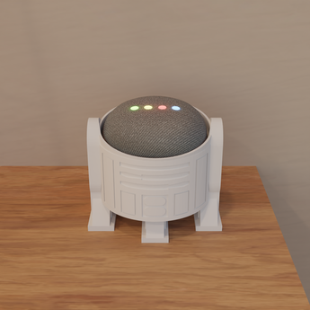 Διασκεδαστική θήκη για ένα Google Nest Mini 2ης γενιάς, το οποίο έχει σχεδιαστεί σαν το R2D2 από το Star Wars.