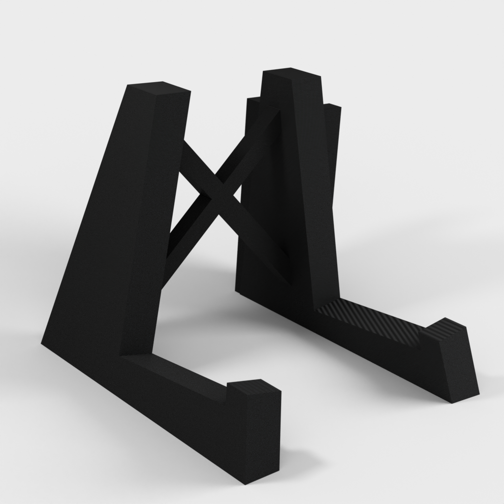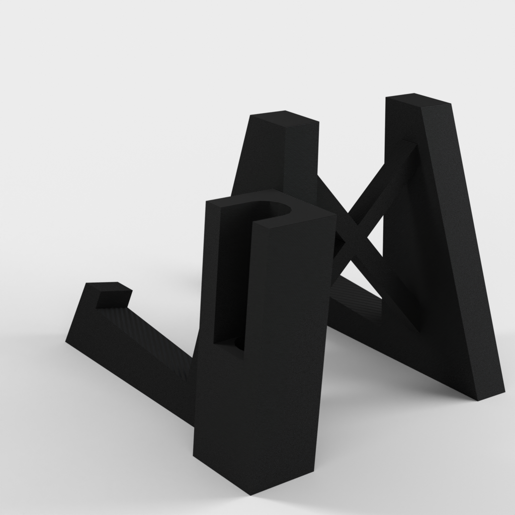 Ένα τρίποδο για ένα βιολί που περιλαμβάνει μια βάση για το τόξο.