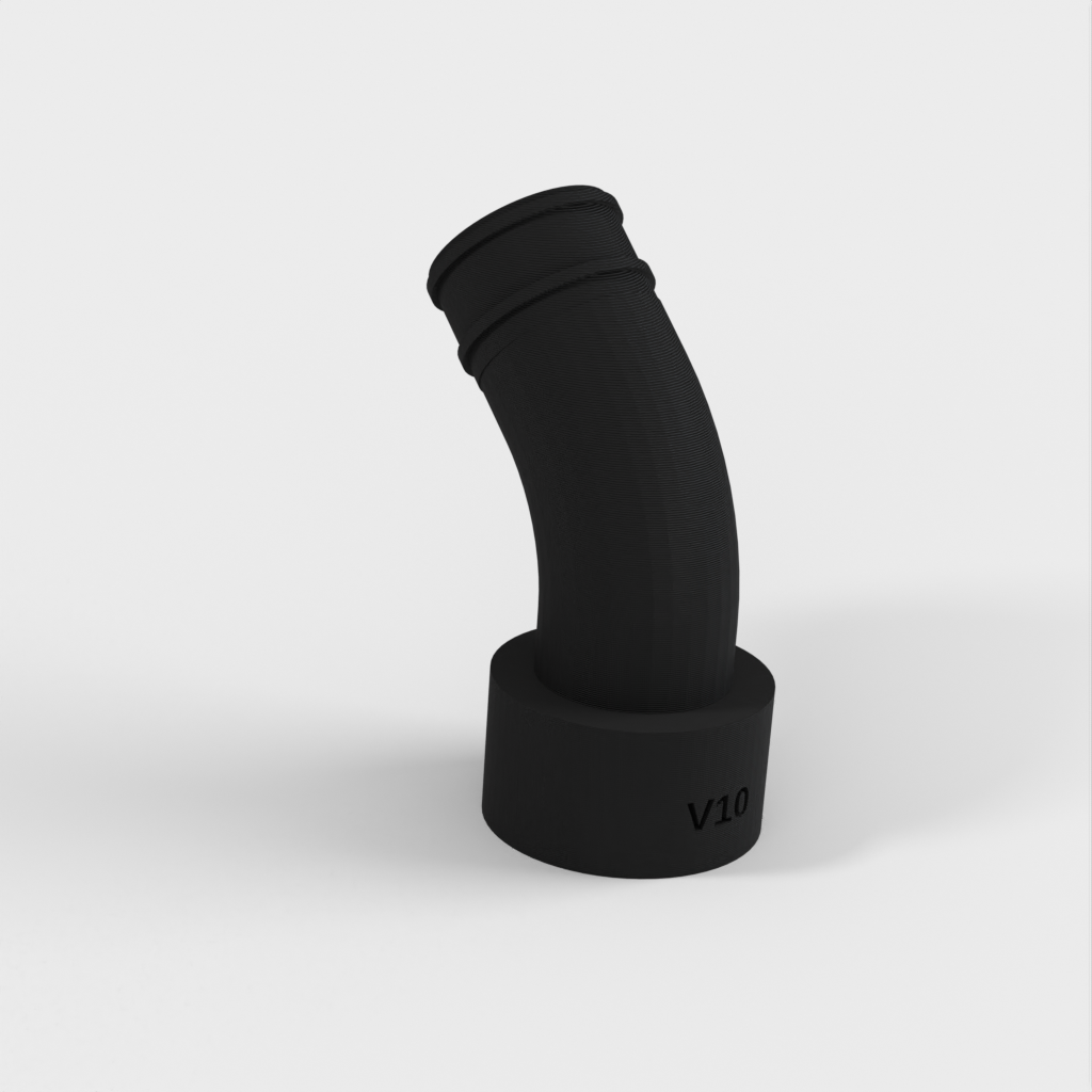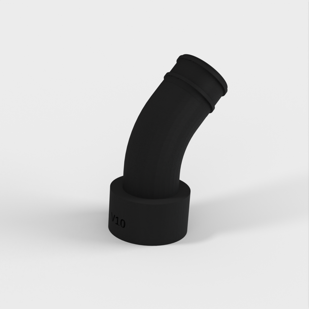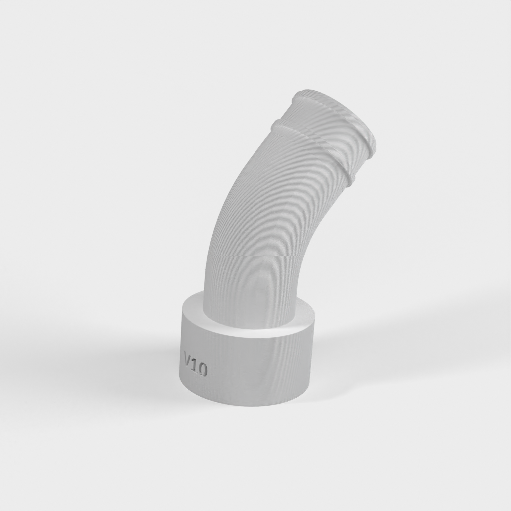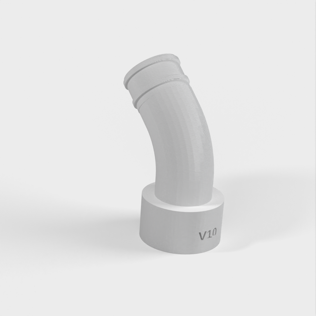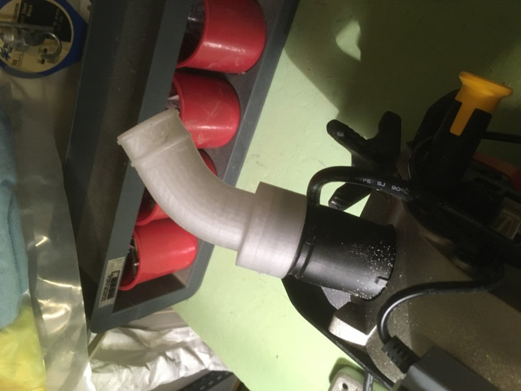 Σε μεταγενέστερη χρήση του συνδέσμου, ανακάλυψα ότι θα μπορούσε να προκύψει ένα πρόβλημα εάν δεν υπήρχε αρκετός χώρος πίσω από το πριόνι για το άκαμπτο τμήμα του σωλήνα της ηλεκτρικής σκούπας. Για να το λύσω αυτό, το επανασχεδίασα με μια κάμψη, ώστε να μπορεί να συνδεθεί απευθείας στον εύκαμπτο σωλήνα και να παρακάμψει το άκαμπτο τμήμα.