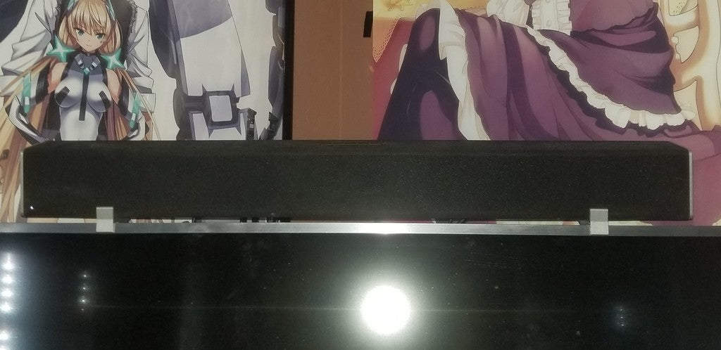 Απλή βάση τοίχου για μια ηχόμπαρα Vizio SB2920-C6 που ταιριάζει πάνω από μια τηλεόραση Samsung KU7000 σειράς 40". Αυτή η βάση γλιστράει πάνω από την κορυφή της τηλεόρασης και στη συνέχεια στερεώνεται εύκολα στο πίσω μέρος της τηλεόρασης σε μια σχισμή για αερισμό, δημιουργώντας μια τακτοποιημένη και τακτοποιημένη εγκατάσταση.