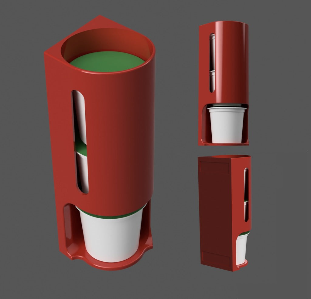 Η θήκη προορίζεται να τοποθετηθεί στο πλάι της καφετιέρας Keurig, κάτι που κάνει τα K-cups εύκολα προσβάσιμα και εξοικονομεί χώρο στον πάγκο της κουζίνας. Διαθέτει εγκοπές στο πίσω μέρος, οι οποίες είναι κατάλληλες για στερέωση με γκρι ταινία διπλής όψης 3M (δεν περιλαμβάνεται), εξασφαλίζοντας σταθερή και διακριτική τοποθέτηση.