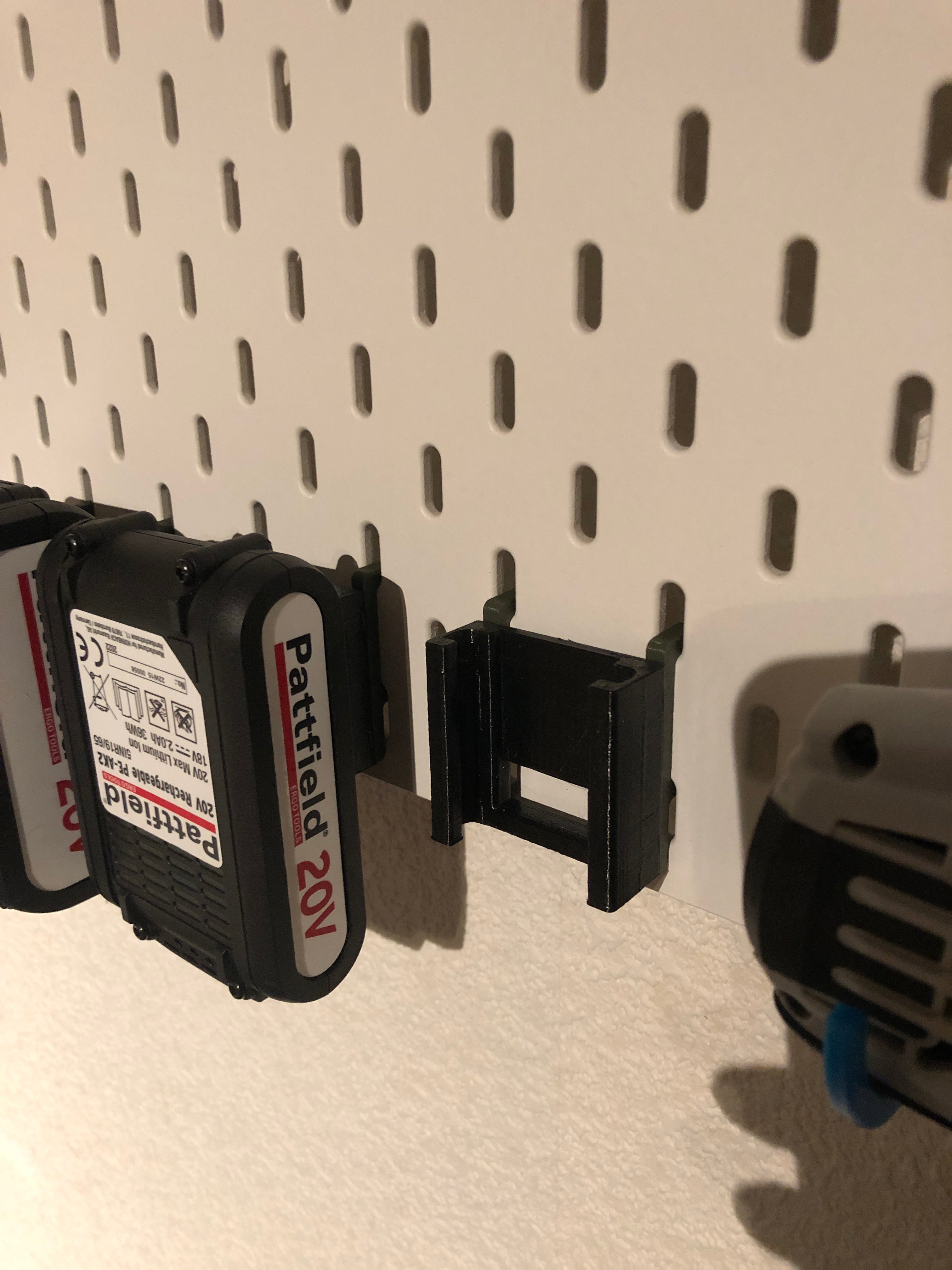 Αυτή η βάση 2 σε 1 έχει σχεδιαστεί για να τοποθετείτε με ασφάλεια τις μπαταρίες 20V Worx ή Pattfield στο σύστημά σας IKEA Skadis. Παρέχει μια πρακτική λύση αποθήκευσης που διατηρεί τις μπαταρίες σας οργανωμένες και εύκολα προσβάσιμες στο εργαστήριο, το γκαράζ ή το δωμάτιο χόμπι σας. Η τοποθέτηση είναι στιβαρή, χάρη στην εφαρμογή ακριβείας με καθολικούς γάντζους (από το σετ CSD_Salzburg), διασφαλίζοντας ότι οι μπαταρίες σας παραμένουν στη θέση τους.
