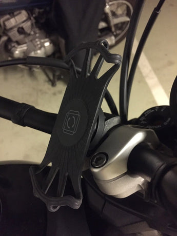 Το smartphone σας συγκρατείται με ασφάλεια στη θέση του με τέσσερις ισχυρούς λαστιχένιους ιμάντες που πιάνουν κάθε γωνία του τηλεφώνου. Στη συνέχεια, η σχετική πλάκα τοποθετείται σε μια στιβαρή βάση, η οποία στερεώνεται διακριτικά στο τιμόνι της μοτοσικλέτας σας. Ένα πρακτικό χαρακτηριστικό είναι ότι η πλάκα μπορεί εύκολα να αφαιρεθεί και να περιστραφεί, παρέχοντας βέλτιστη προβολή και ευελιξία κατά την οδήγηση.