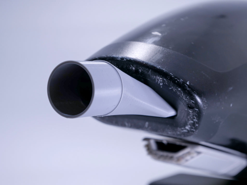 Προσαρμογέας για μια ασύρματη ηλεκτρική σκούπα Ryobi ONE+, ώστε να μπορεί να χρησιμοποιήσει τον εύκαμπτο σωλήνα από τον συμπιεστή Ryobi 18V ONE+ για να φτάσει σε δυσπρόσιτα σημεία.