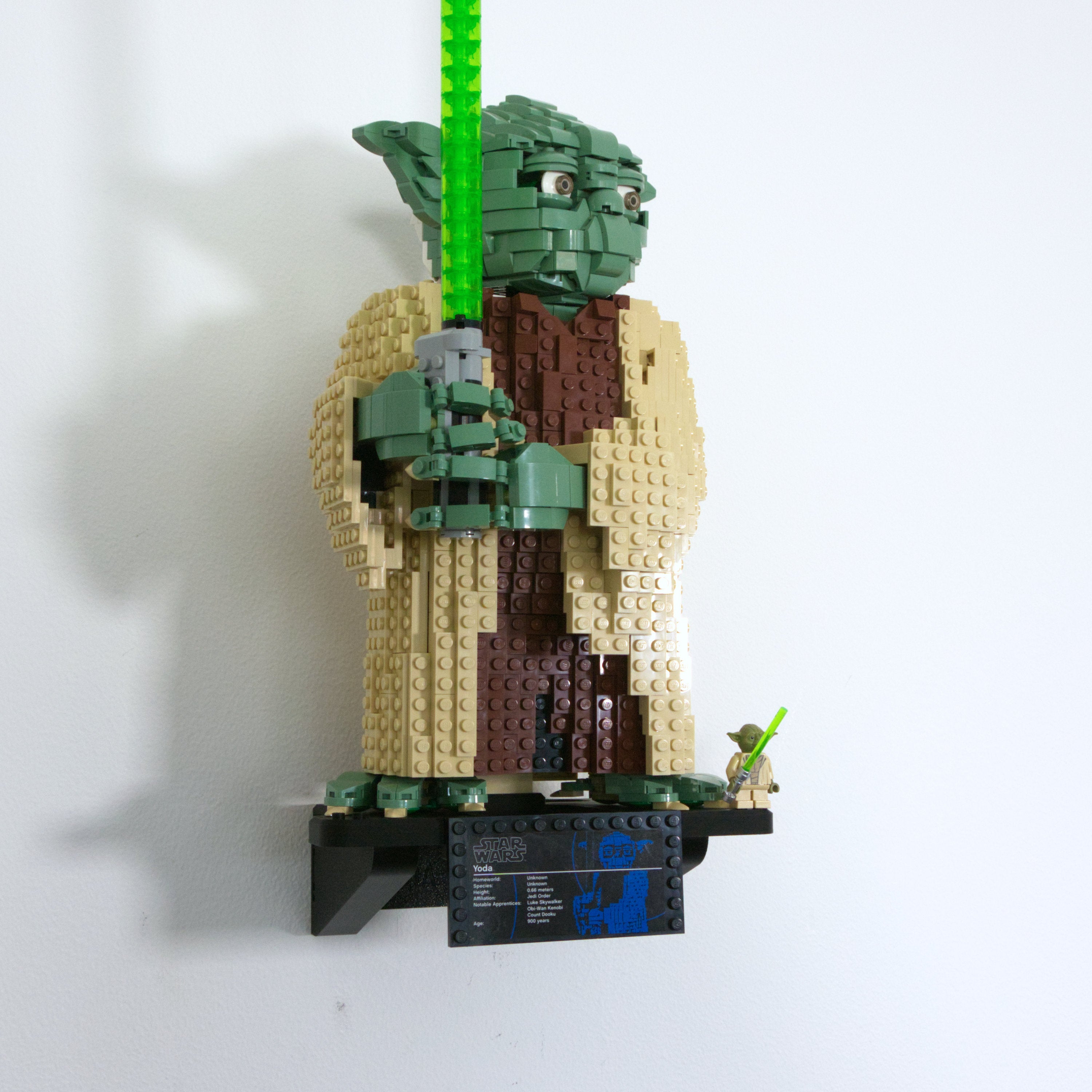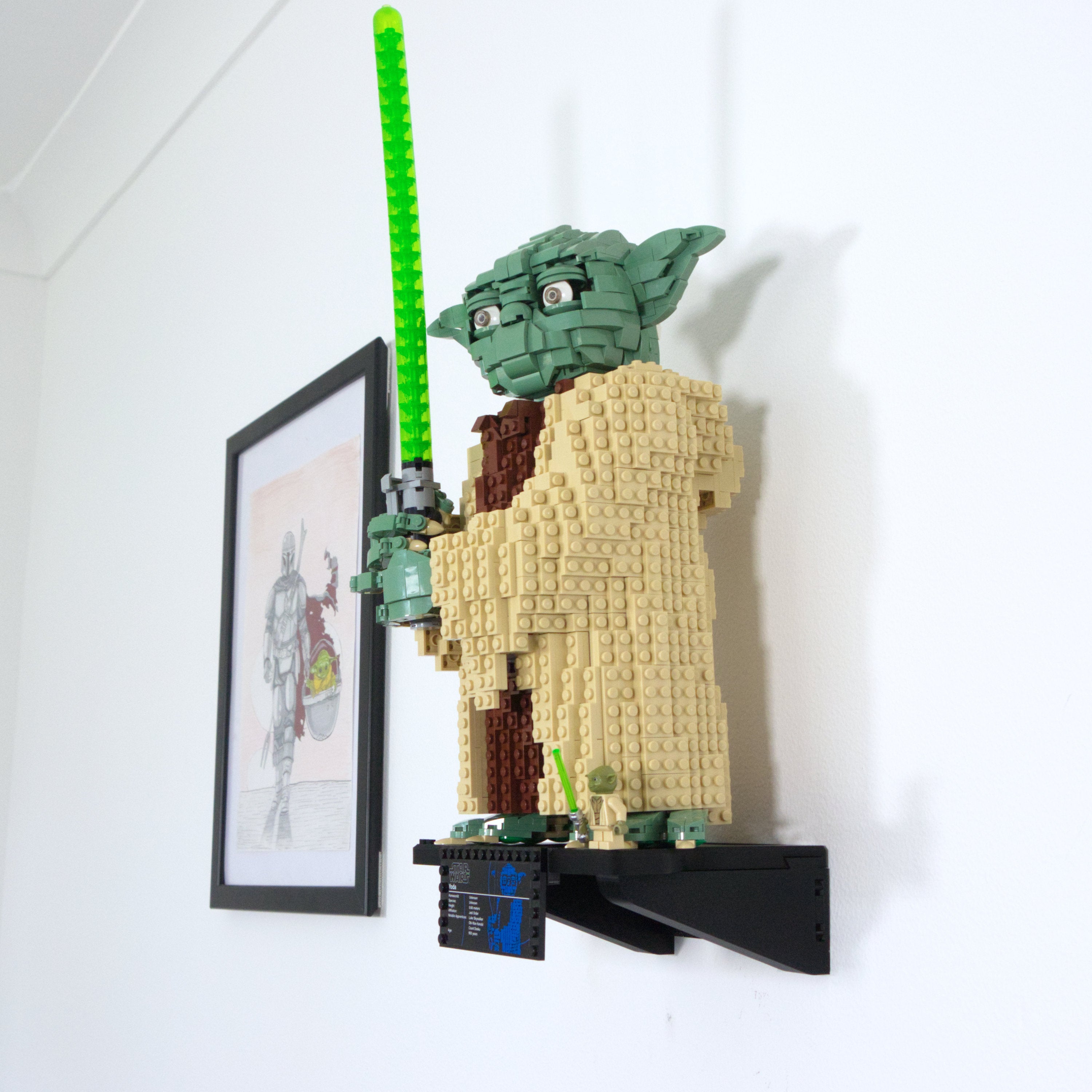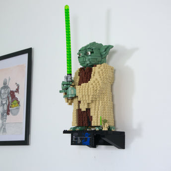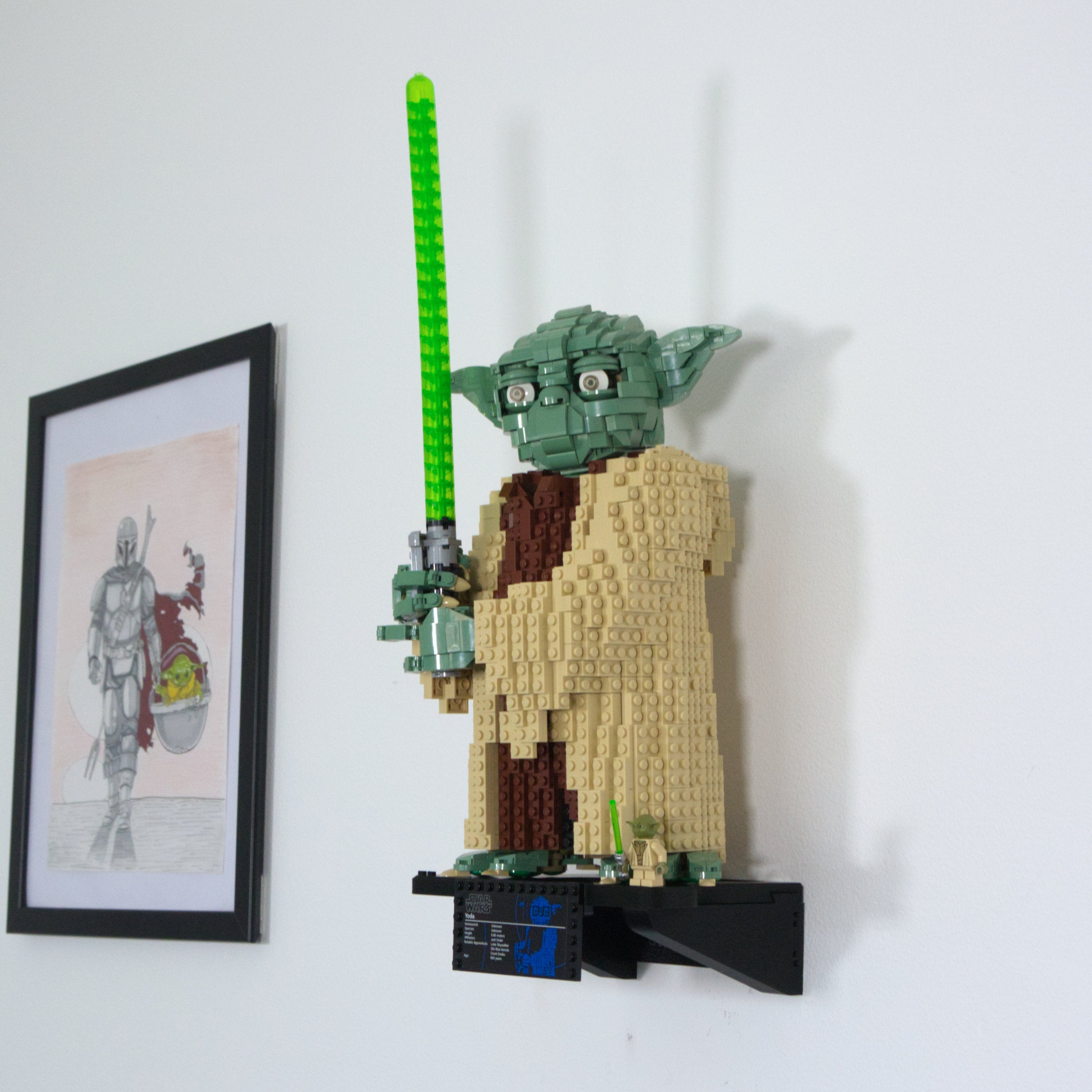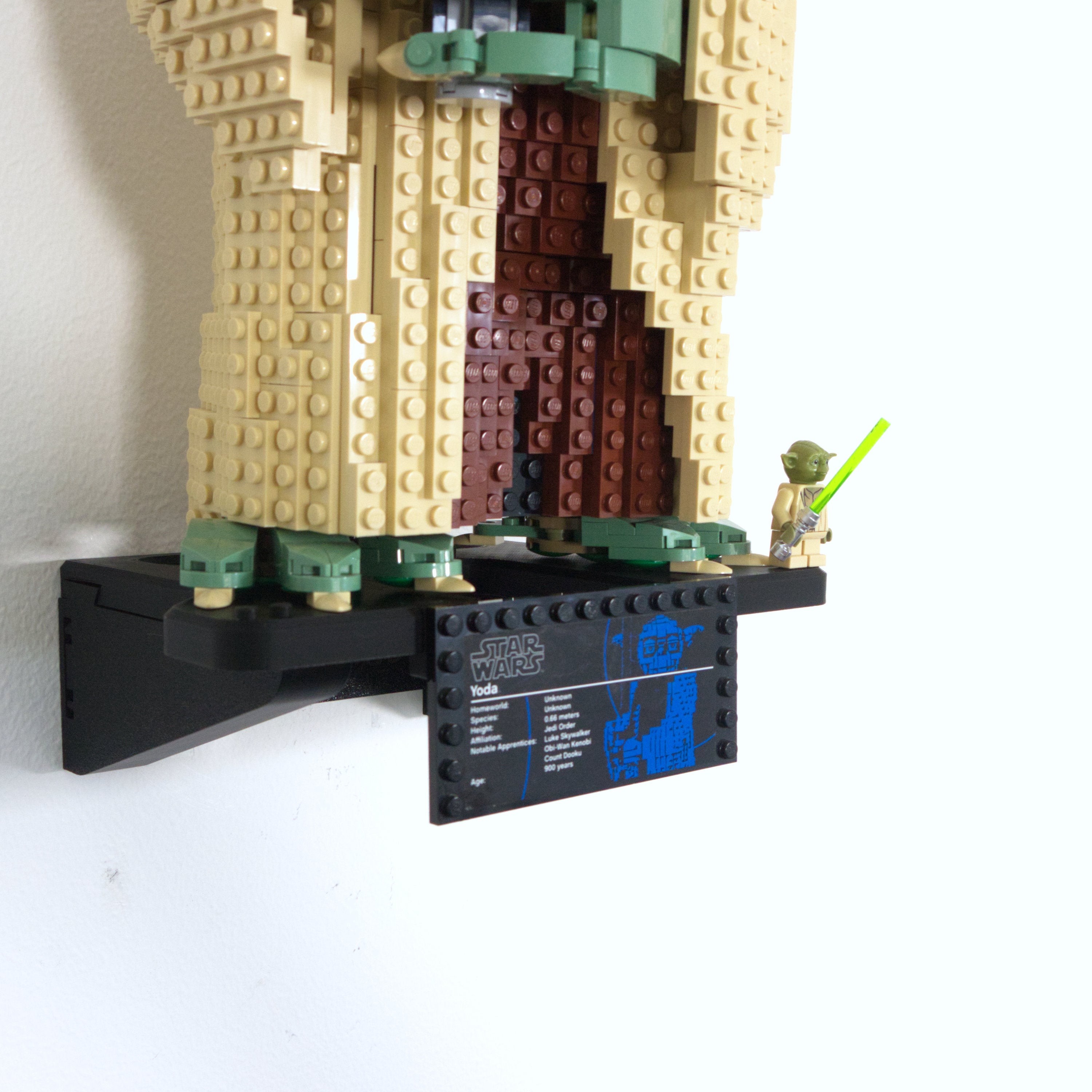 Αυτή η βάση στήριξης τοίχου είναι σχεδιασμένη ειδικά για το Star Wars Yoda 75255. Η βάση εξασφαλίζει σταθερή ανάρτηση, όπου το μοντέλο μπορεί εύκολα να αφαιρεθεί ξανά αν χρειαστεί. Περιλαμβάνεται μια βάση τόσο για την πλάκα πληροφοριών όσο και για το μίνι φιγούρα, συγκεντρώνοντας έτσι ολόκληρη την έκθεση. Η τοποθέτηση απαιτεί μόνο μία βίδα στον τοίχο.