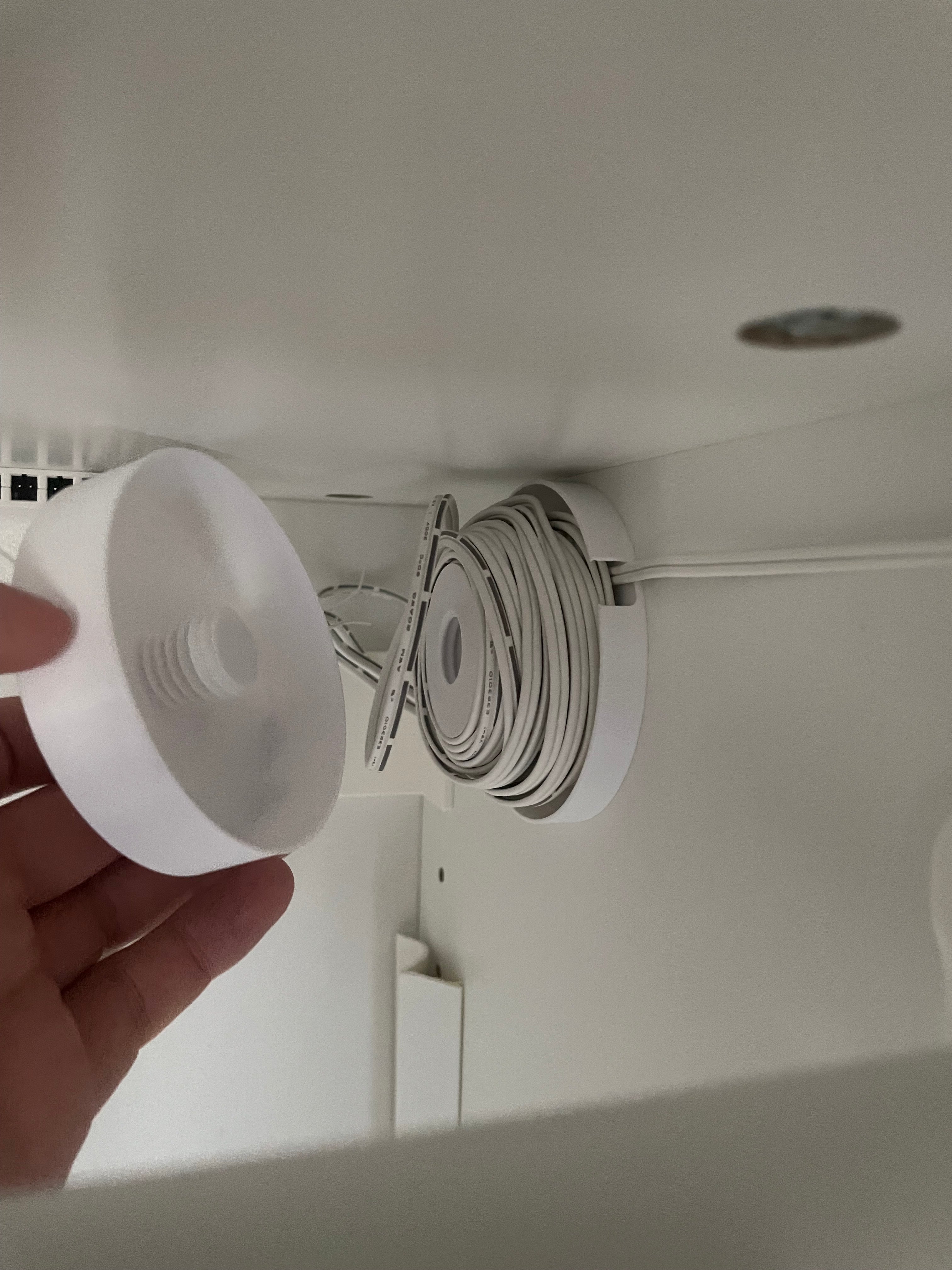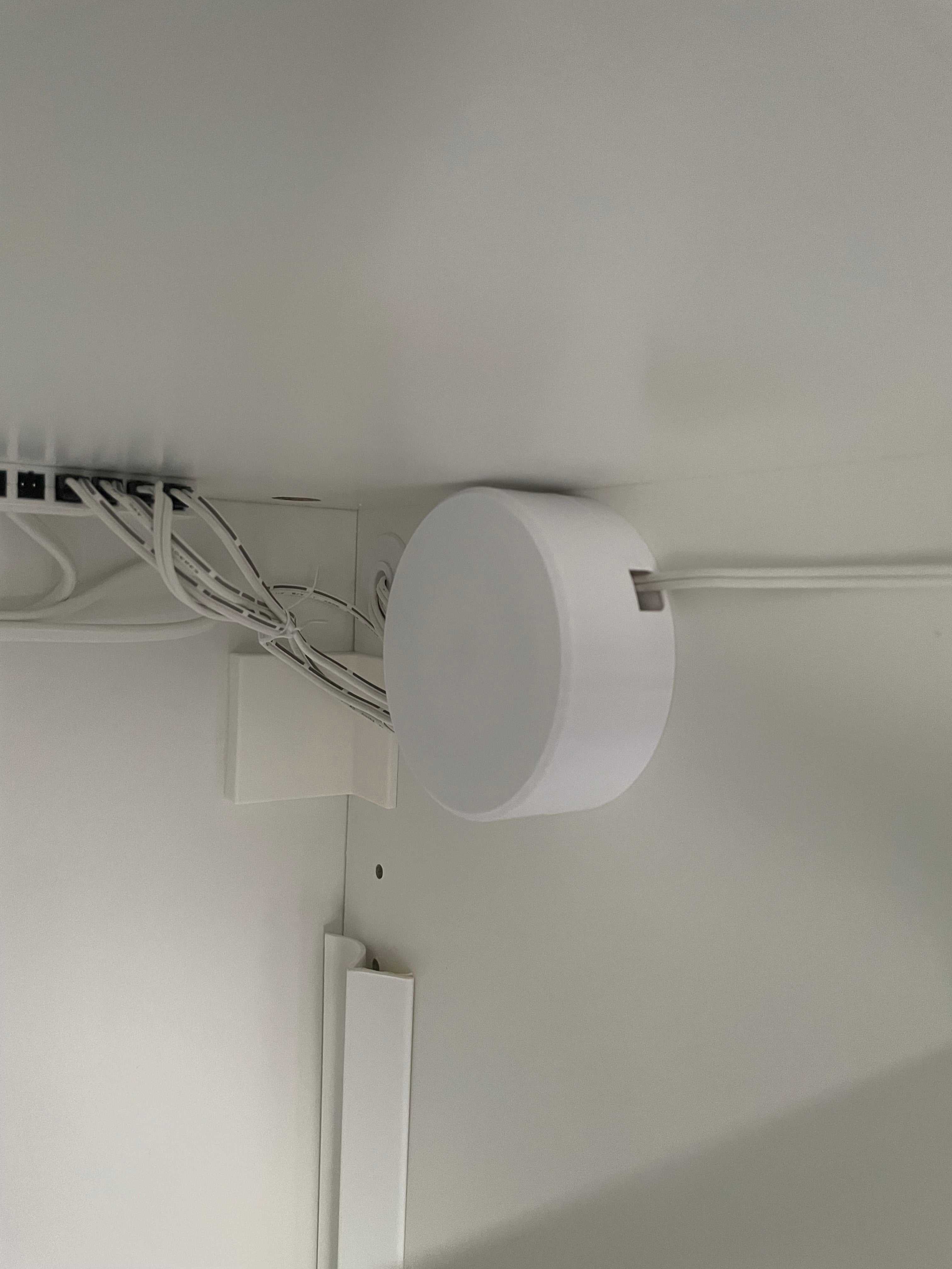 Στρογγυλός οργανωτής καλωδίων για μόνιμη εγκατάσταση. Αυτό το προϊόν διαθέτει μια τρύπα στη μέση της βάσης, ώστε να μπορεί να στερεωθεί σε τοίχο.
