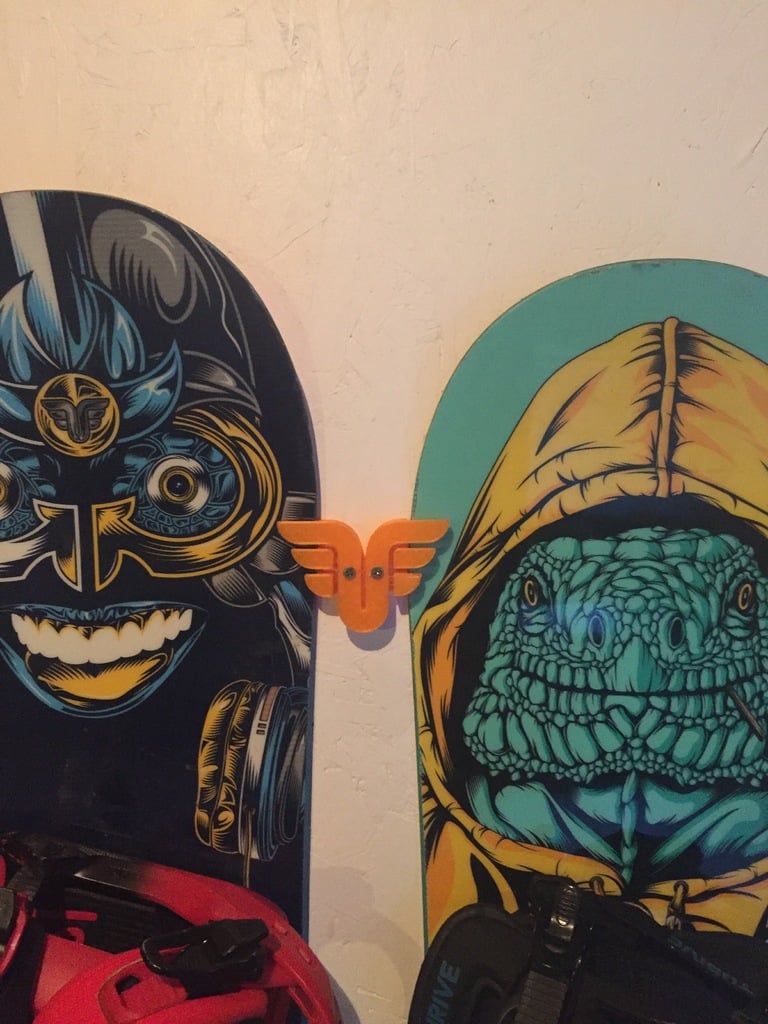 Επιτοίχια βάση για snowboard από την Thrive Snowboards. Δύο από αυτά μπορούν να χρησιμοποιηθούν για να κρεμάσετε ένα snowboard κάθετα σε έναν τοίχο. Ο τέλειος τρόπος για να αποθηκεύσετε το snowboard σας με ασφαλή και κομψό τρόπο.