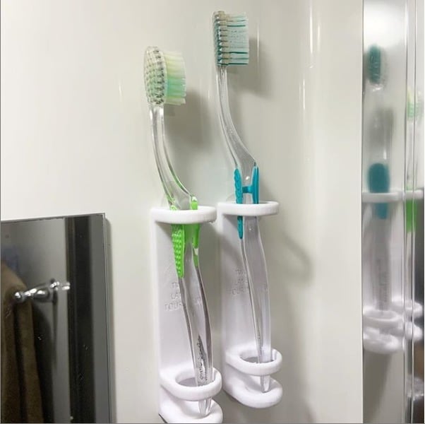 Αυτή είναι μια απλή θήκη οδοντόβουρτσας που έχει σχεδιαστεί για να ταιριάζει στις περισσότερες οδοντόβουρτσες. Εγκαθίσταται εύκολα σε οποιαδήποτε επίπεδη επιφάνεια με μια απλή ταινία εντολών. Αυτός ο σχεδιασμός συγκρατεί την οδοντόβουρτσά σας στη θέση της και καθαρίζεται ακόμη πιο εύκολα! Έχει χρησιμοποιηθεί σε ένα τροχόσπιτο στο δρόμο και η οδοντόβουρτσα εξακολουθεί να μην πέφτει. Λόγω των στρογγυλεμένων άκρων και της εσοχής όπου κάθεται η οδοντόβουρτσα, είναι πολύ εύκολο να σκουπίσετε την περίσσεια οδοντόκρεμας ή νερού που μπορεί να συσσωρευτεί με την πάροδο του χρόνου. Ελπίζω να το βρείτε χρήσιμο!