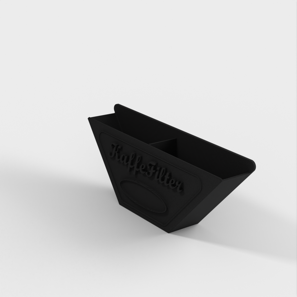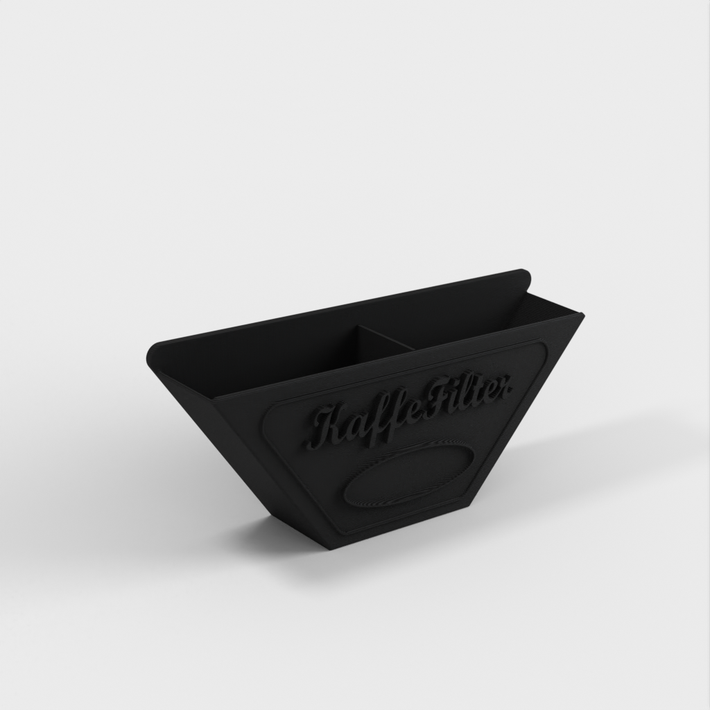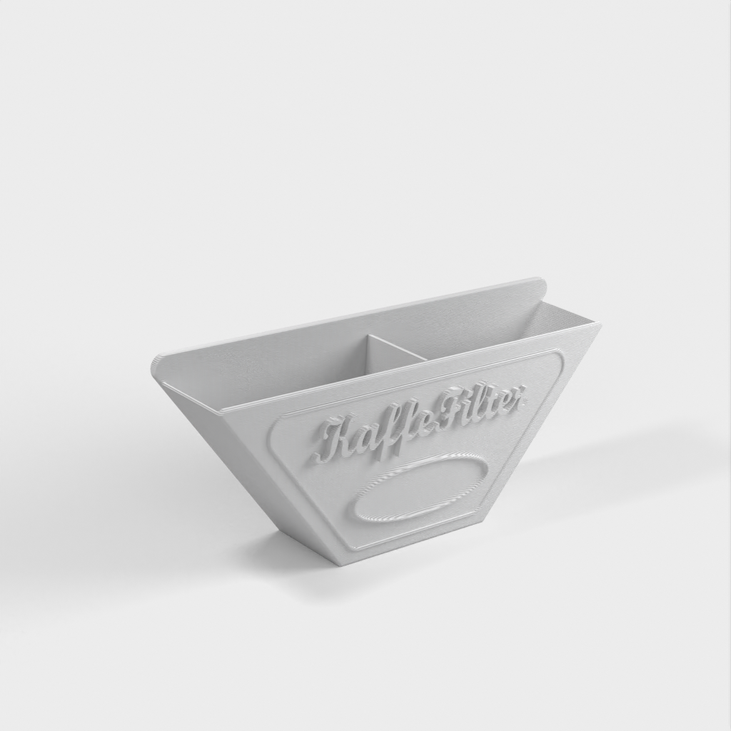 Τέλεια βάση φίλτρου καφέ για RV και ρυμουλκούμενα ταξιδιού. Αυτή η βάση φίλτρου χωράει περίπου. Διαθέτει 20 χάρτινα φίλτρα και μπορεί να εκτυπωθεί σε χωριστή, όρθια έκδοση. Μια μεγαλύτερη έκδοση είναι επίσης διαθέσιμη για να φιλοξενήσει περισσότερα φίλτρα.