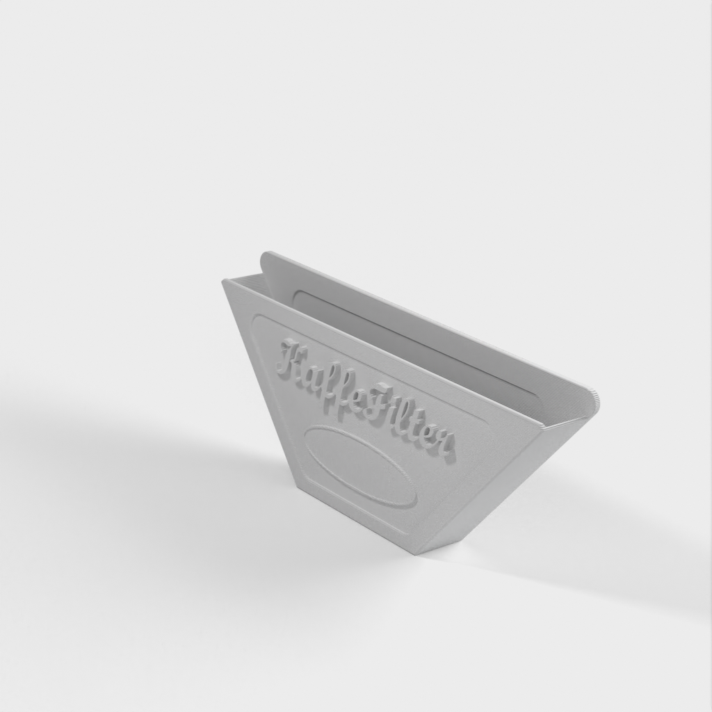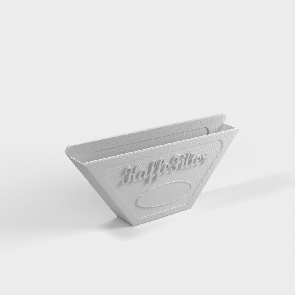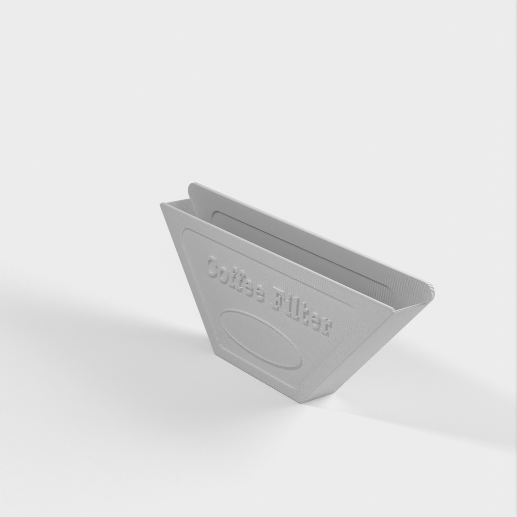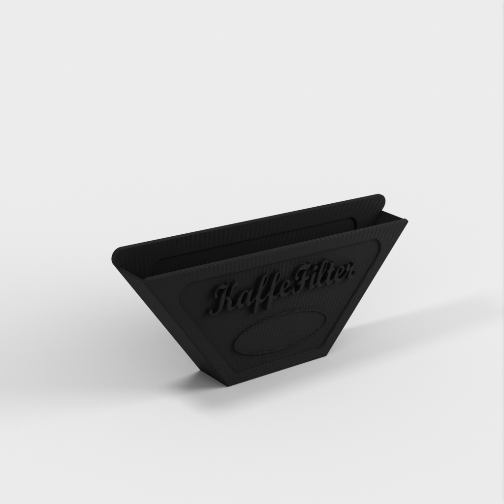 Τέλεια βάση φίλτρου καφέ για RV και ρυμουλκούμενα ταξιδιού. Αυτή η βάση φίλτρου χωράει περίπου. Διαθέτει 20 χάρτινα φίλτρα και μπορεί να εκτυπωθεί σε χωριστή, όρθια έκδοση. Μια μεγαλύτερη έκδοση είναι επίσης διαθέσιμη για να φιλοξενήσει περισσότερα φίλτρα.