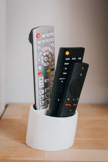 Αυτή η μινιμαλιστική θήκη τηλεχειριστηρίου έχει σχεδιαστεί για να δημιουργεί τάξη και επισκόπηση στο σπίτι σας. Προσφέρει μια πρακτική λύση για την αποθήκευση των τηλεχειριστηρίων σας και μπορεί να χωρέσει μεταξύ 2 και 4 συσκευών, ανάλογα με το μέγεθός τους.