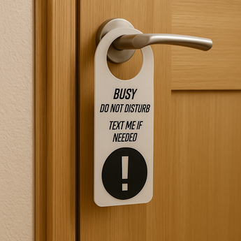 Αυτή η πινακίδα είναι ένας ευγενικός τρόπος να πείτε στους ανθρώπους ότι συγκεντρώνεστε, εργάζεστε ή απλώς θέλετε να μείνετε μόνοι σας προς το παρόν. Η πινακίδα καταφέρνει τόσο να εκφράσει την επιθυμία σας να σας αφήσουν ήσυχους με σταθερό και ταυτόχρονα ευγενικό τρόπο, ώστε να διατηρήσετε την ειρήνη και την αρμονία.