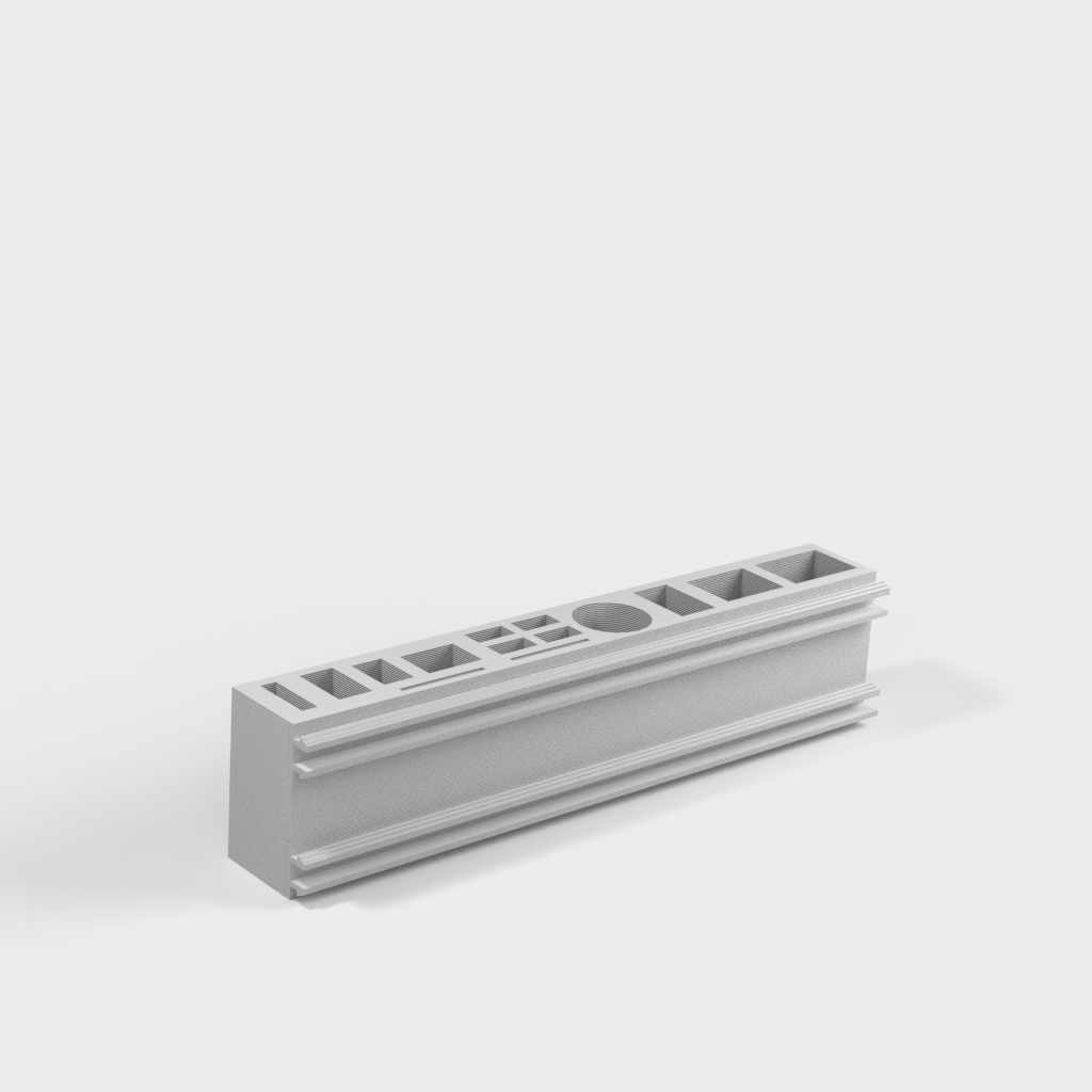Αυτή η πρακτική πλαϊνή εργαλειοθήκη έχει σχεδιαστεί για να βελτιώσει το περιβάλλον του 3D εκτυπωτή σας και να διατηρεί τα απαραίτητα εργαλεία σας οργανωμένα και σε κοντινή απόσταση. Ταιριάζει συγκεκριμένα σε εξωθημένες ράγες αλουμινίου, οι οποίες βρίσκονται σε δημοφιλή μοντέλα 3D εκτυπωτών όπως τα Aquila, Ender 3 και παρόμοια μηχανήματα με δύο υποδοχές.