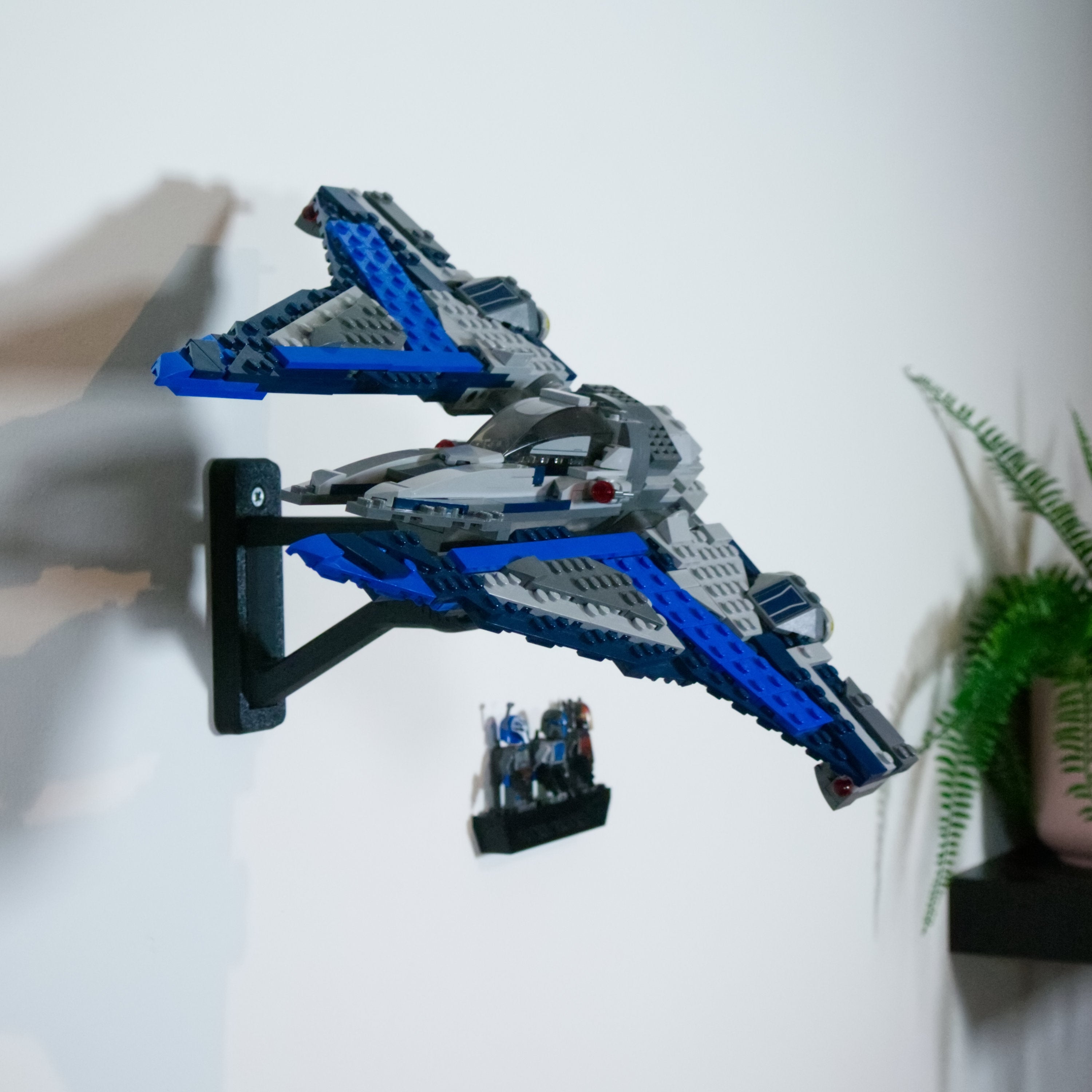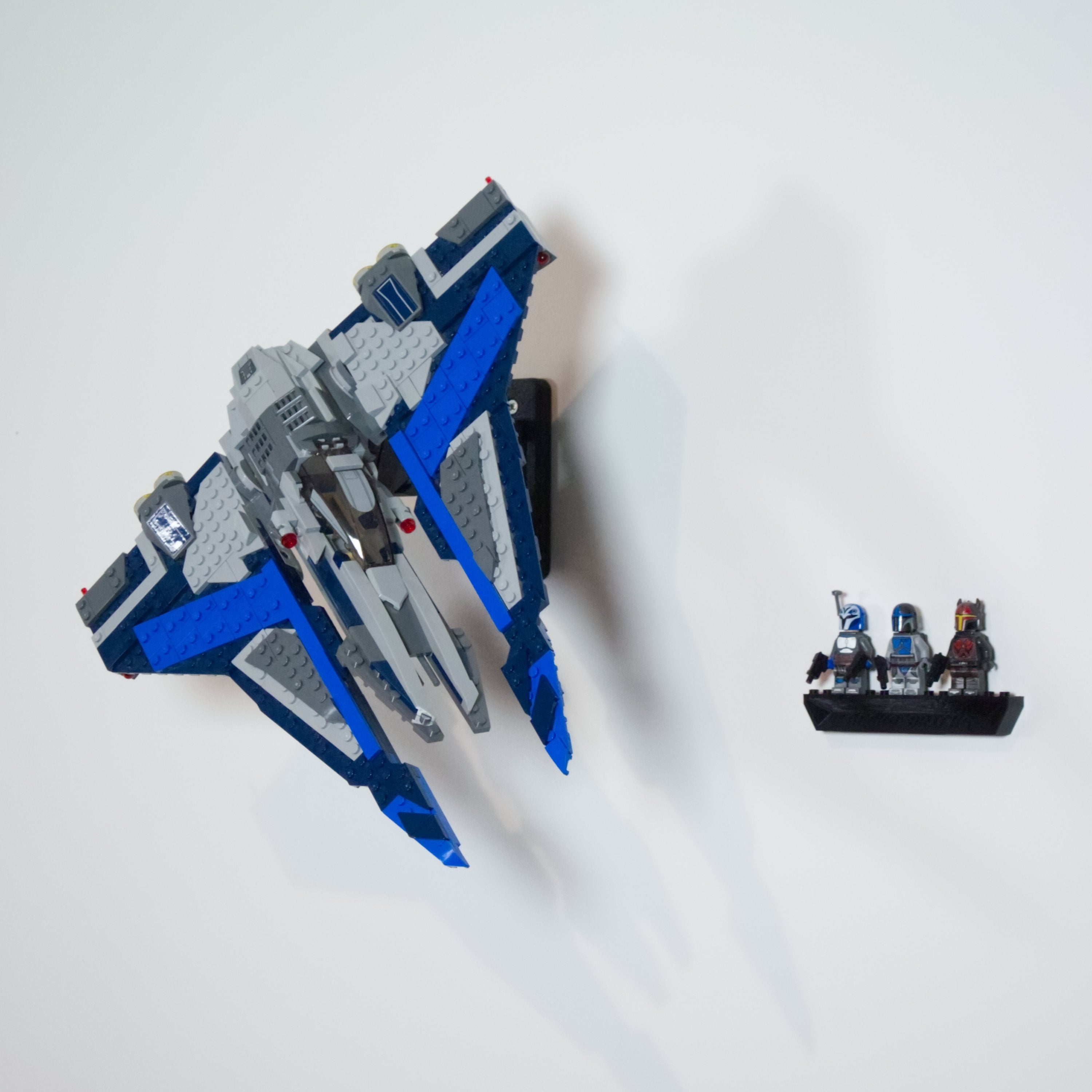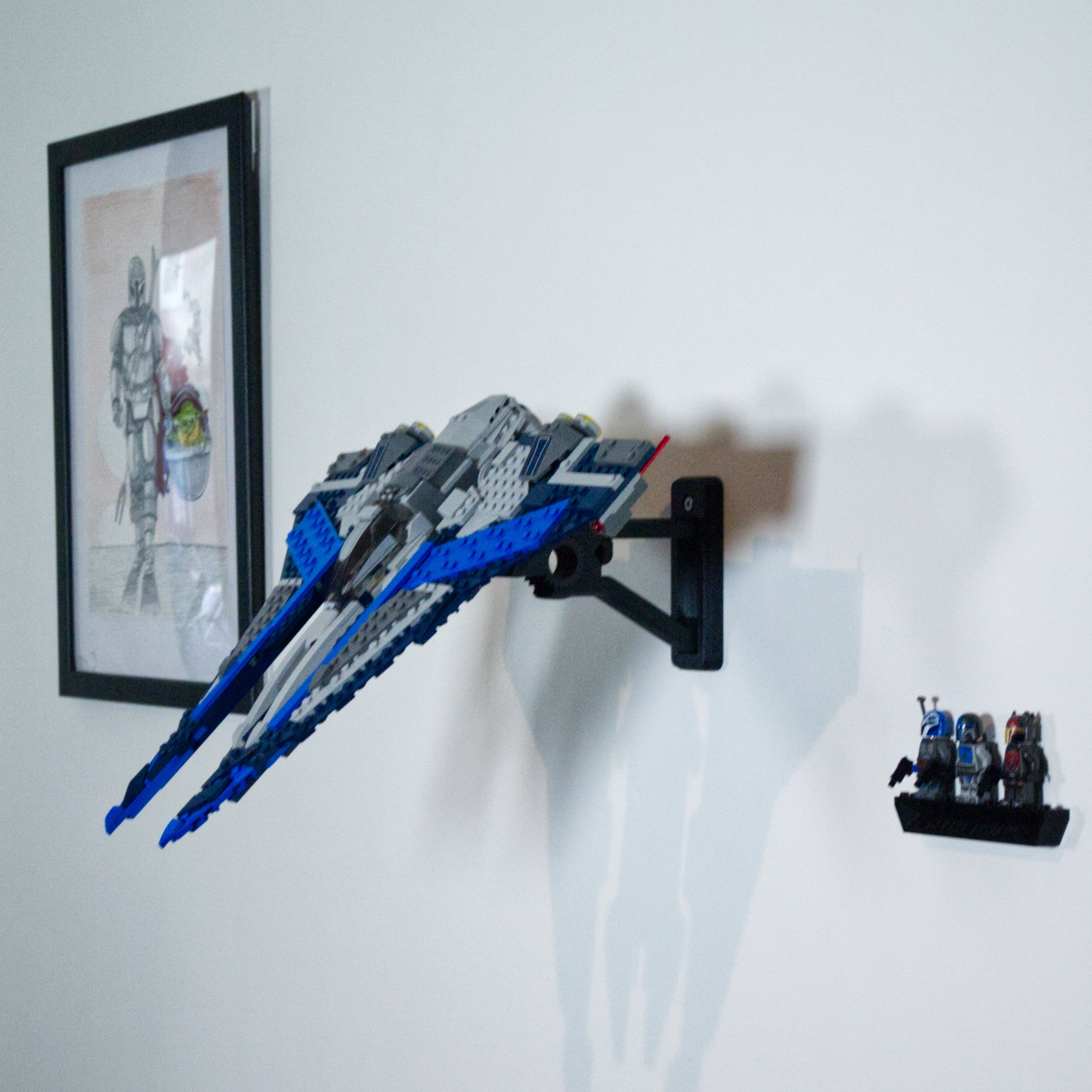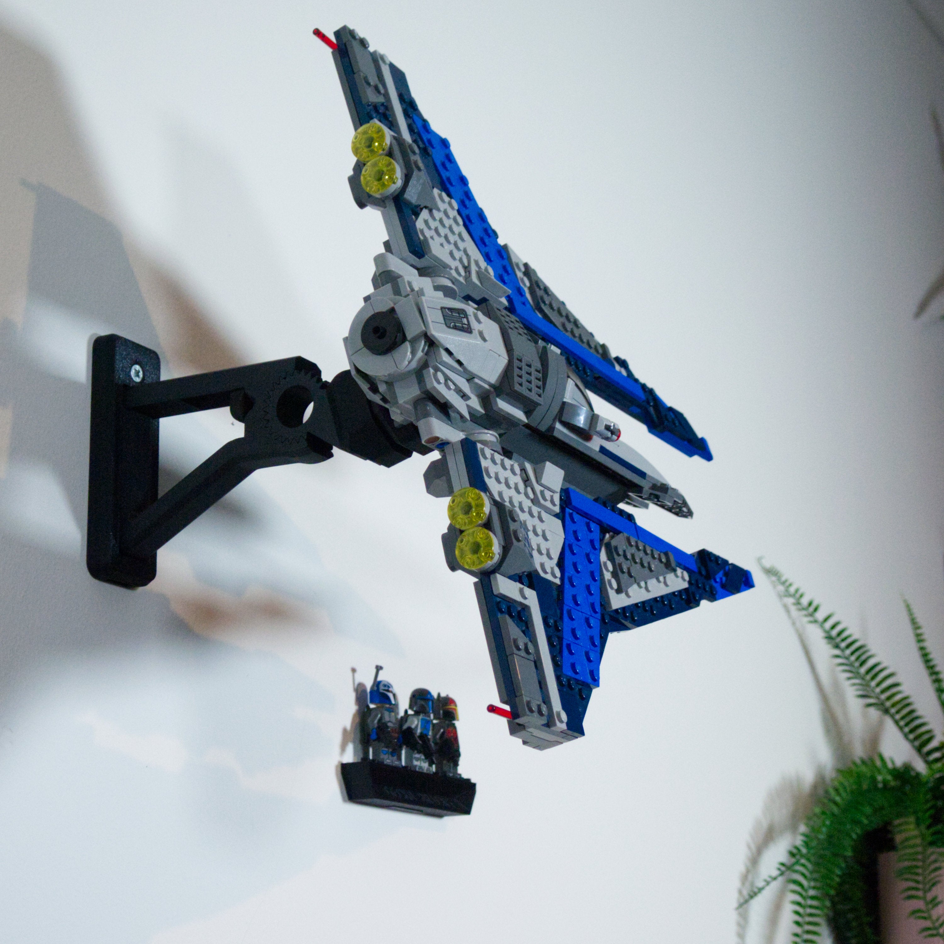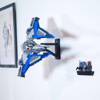 Αυτή η ρυθμιζόμενη βάση στήριξης τοίχου είναι σχεδιασμένη ειδικά για το σετ Mandalorian Starfighter 75316. Επιτρέπει την παρουσίαση του μοντέλου σε διάφορες γωνίες και προσανατολισμούς. Η λύση εξασφαλίζει εύκολη πρόσβαση στο σετ και περιλαμβάνει ξεχωριστή βάση για μίνι φιγούρες, η οποία τοποθετείται με ταινία 3M για μια ολοκληρωμένη έκθεση.