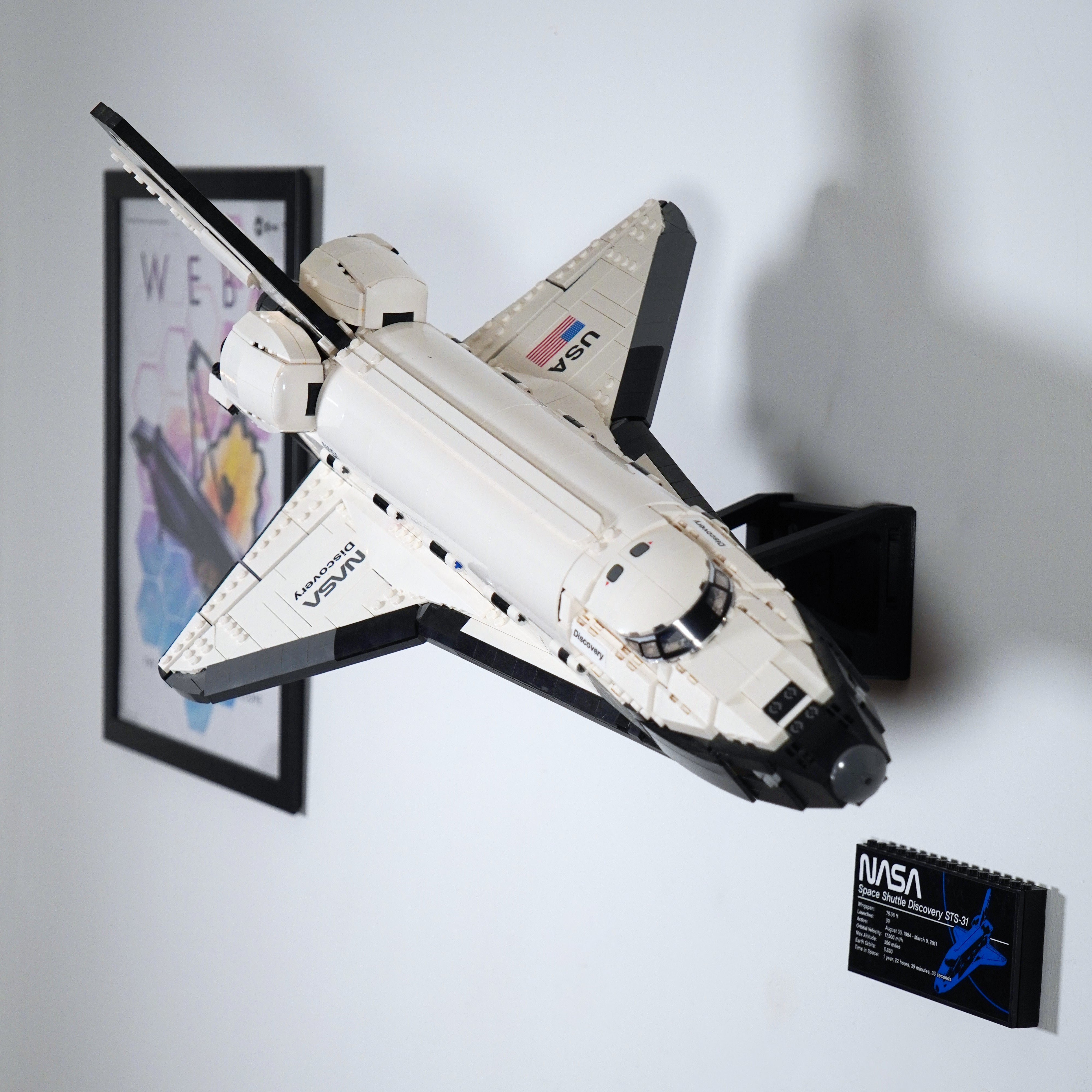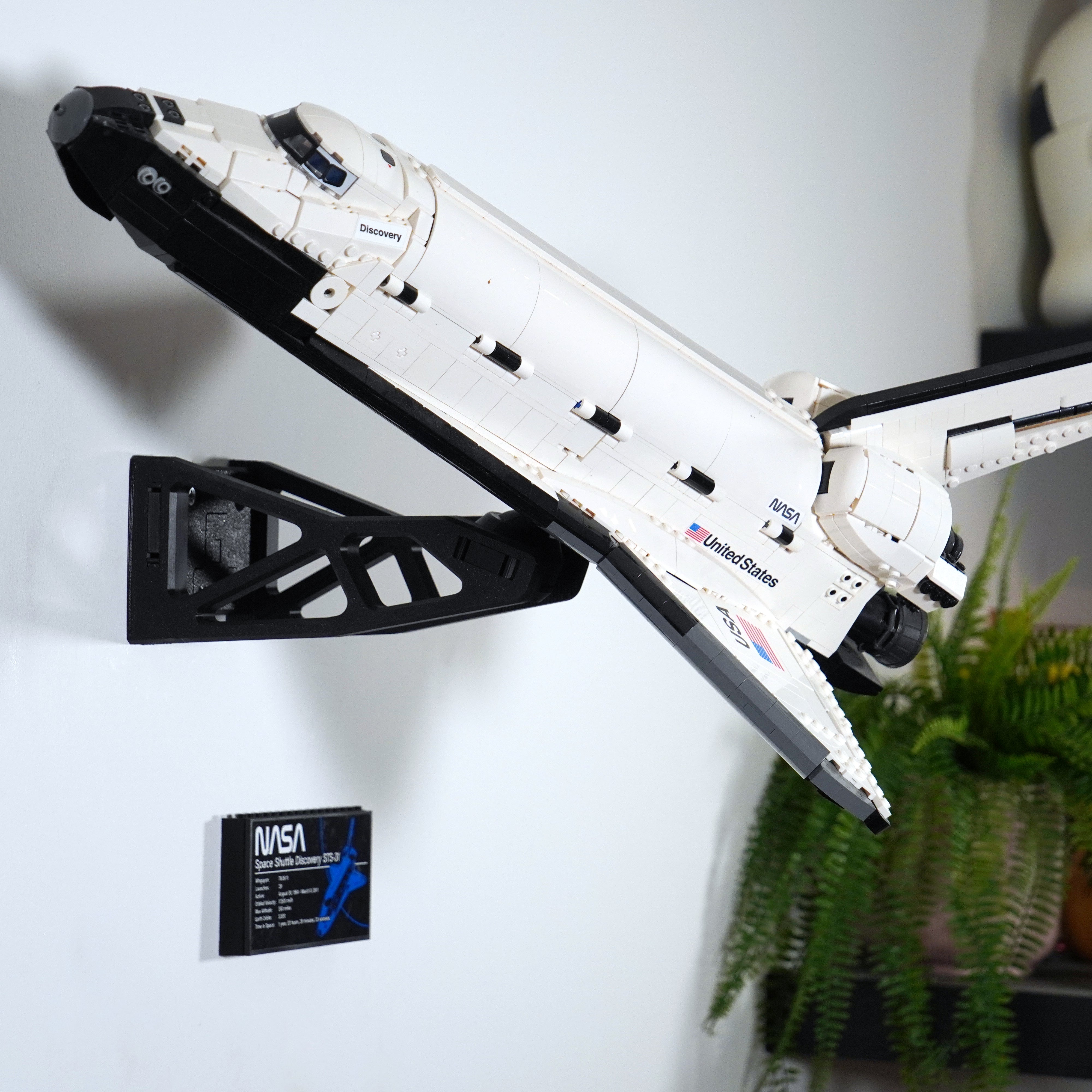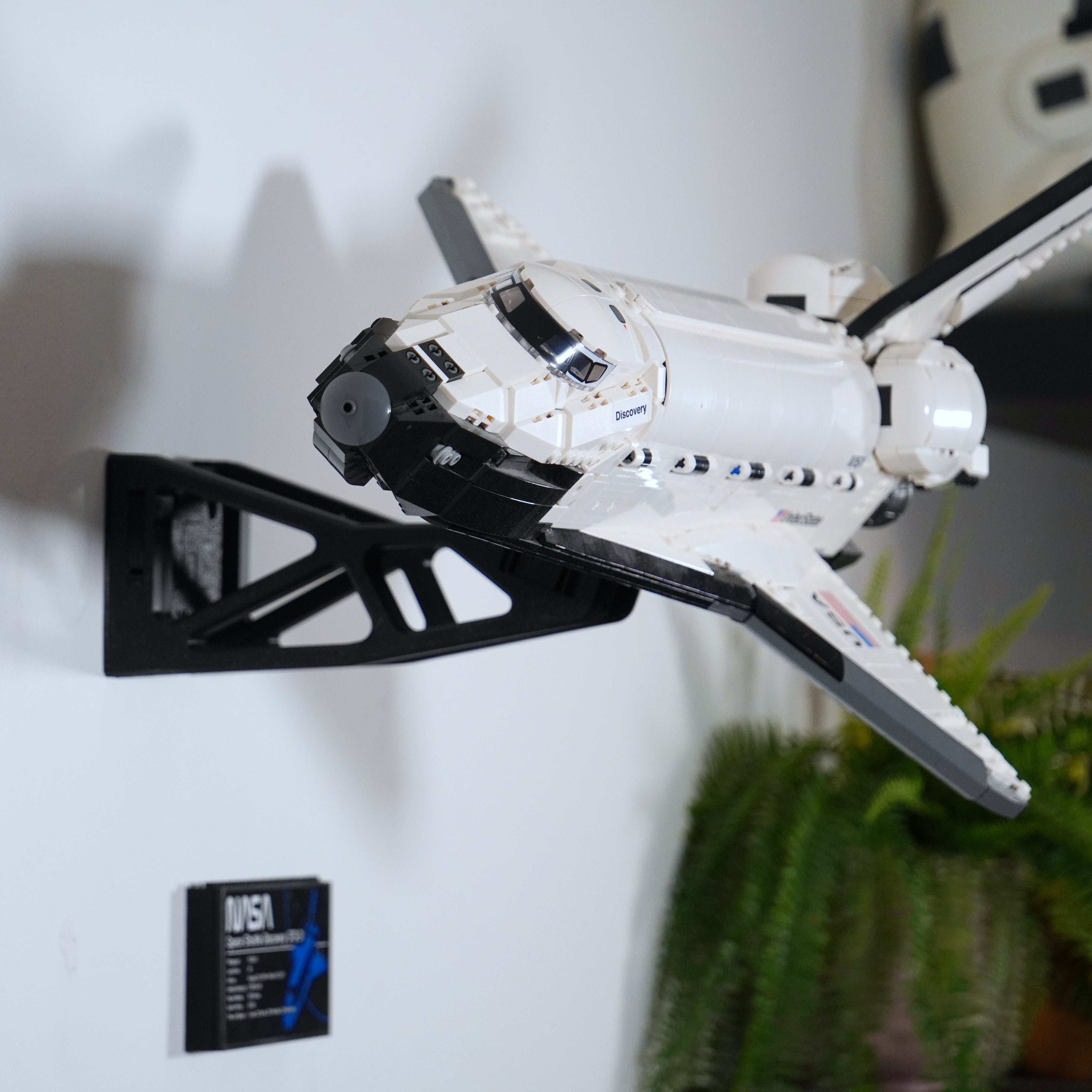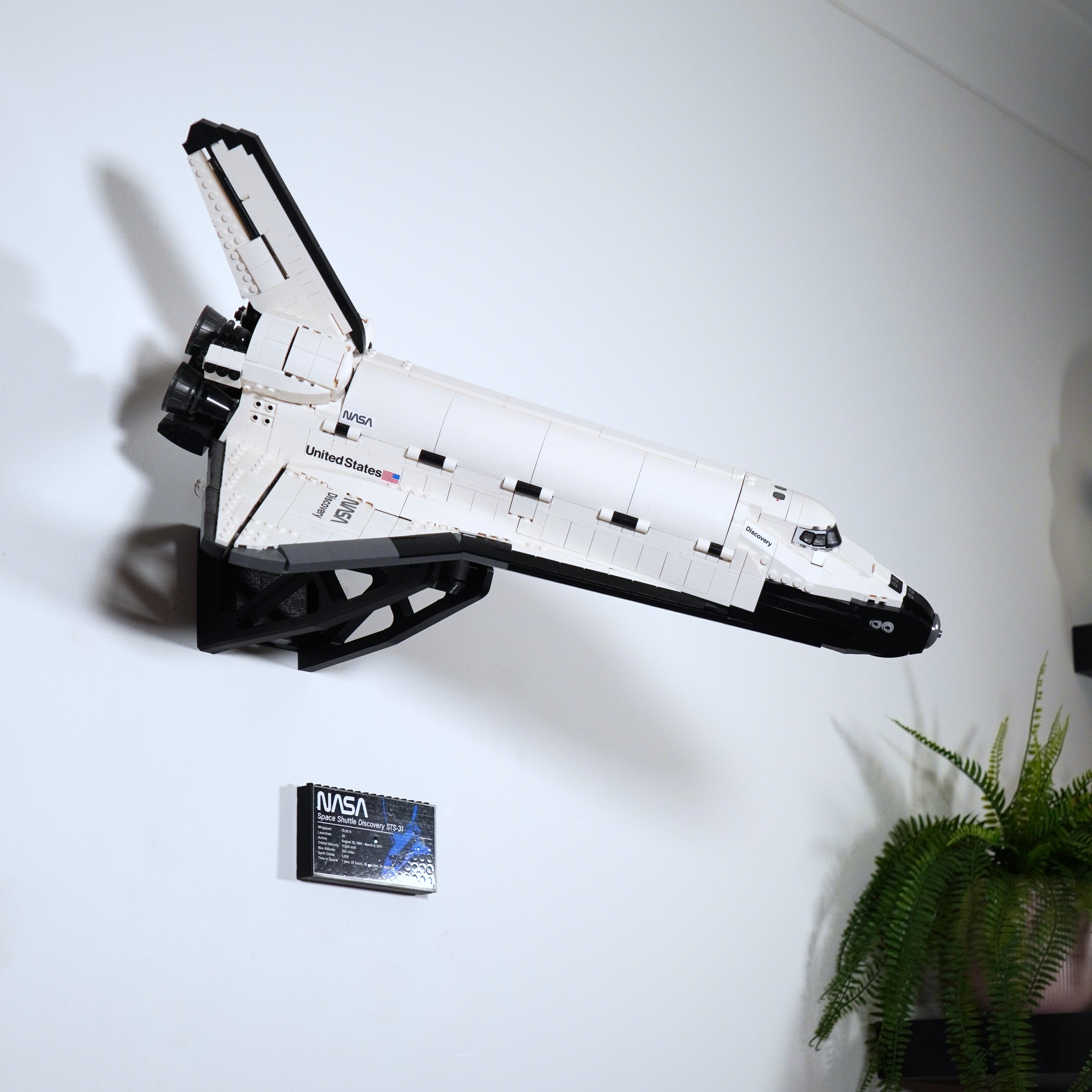 - Vægmontering til LEGO Space Shuttle Discovery 10283, der sikrer en stabil udstilling.