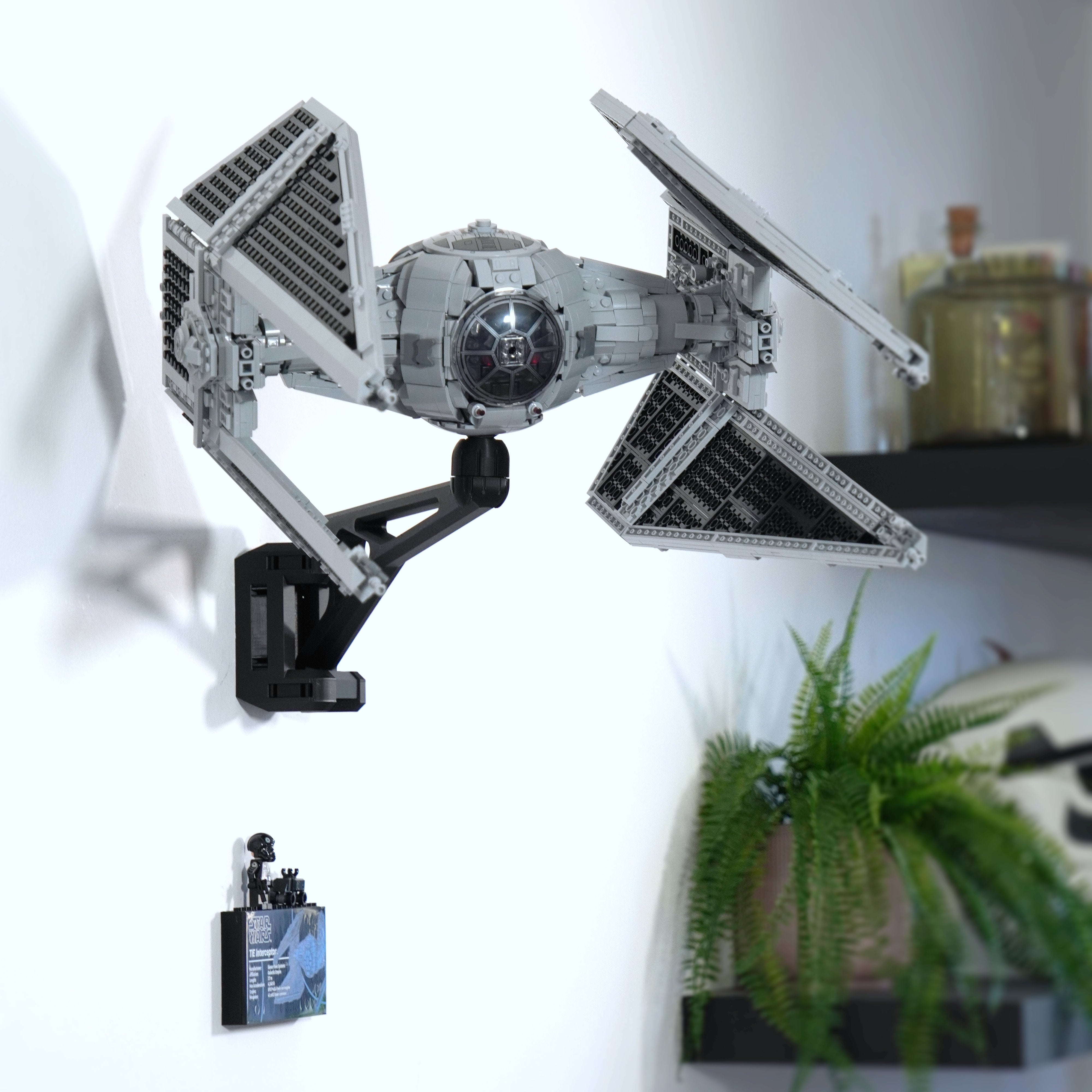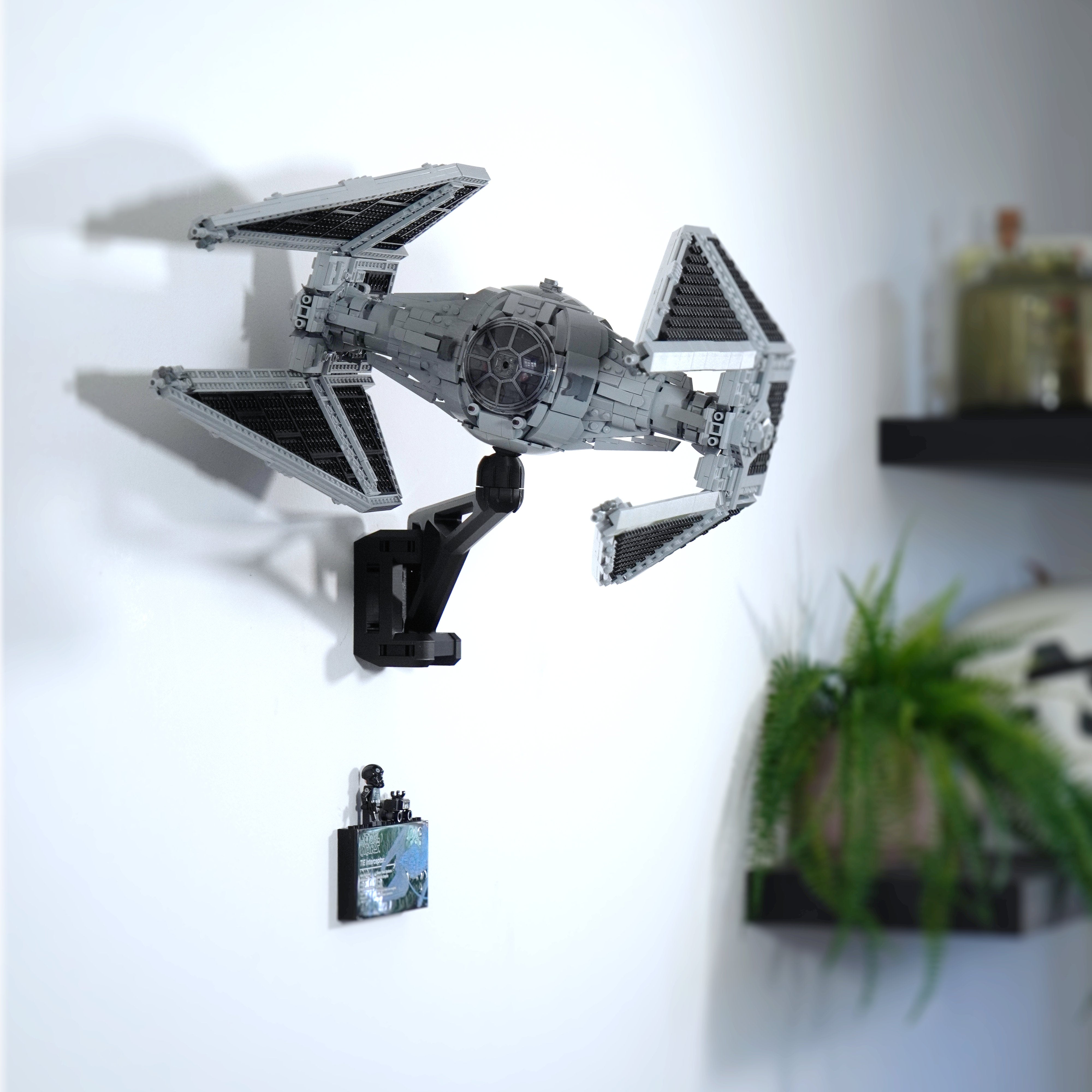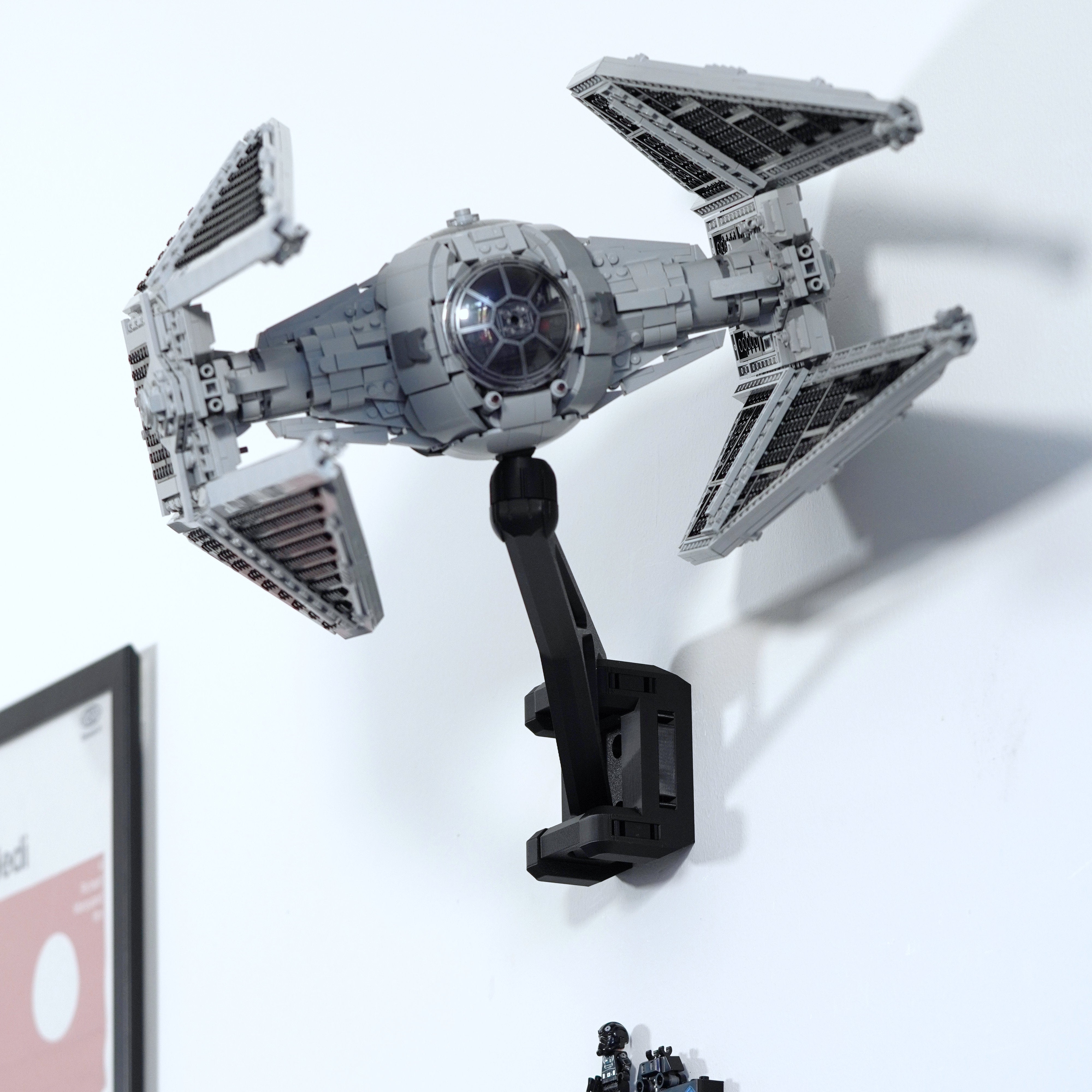 Αυτή η ρυθμιζόμενη βάση στήριξης τοίχου προβάλλει το UCS Tie Interceptor σας με ασφάλεια και κομψότητα. Διαθέτει περιστρεφόμενο βραχίονα και σφαιρική άρθρωση που επιτρέπουν ευέλικτες γωνίες και θέσεις. Η λύση περιλαμβάνει επίσης μια ξεχωριστή βάση για την πλάκα πληροφοριών και τα μίνι φιγούρες, εξασφαλίζοντας μια ολοκληρωμένη παρουσίαση της συλλογής σας.
