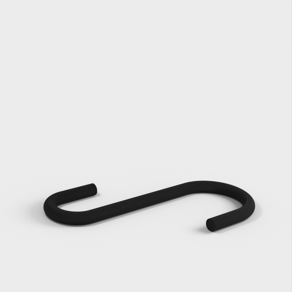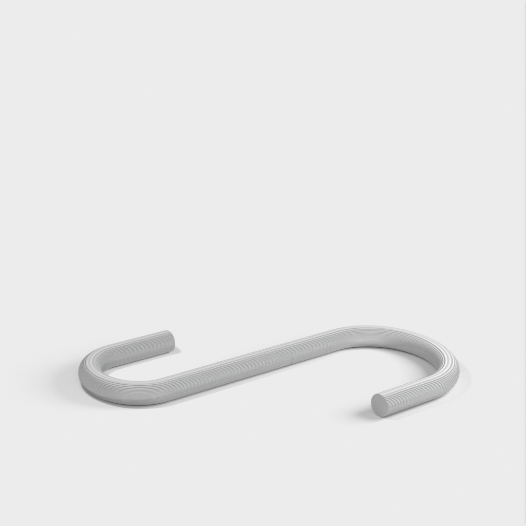 Έχω προσθέσει μια 'αναποδογυρισμένη' έκδοση όπου τα δύο άκρα του γάντζου βρίσκονται σε ορθή γωνία μεταξύ τους. Αυτό καθιστά δυνατή την ανάρτηση φαρδιών αντικειμένων, όπως τα τηγάνια, με προφίλ πολύ πιο εξοικονόμησης χώρου από τον κανονικό γάντζο.