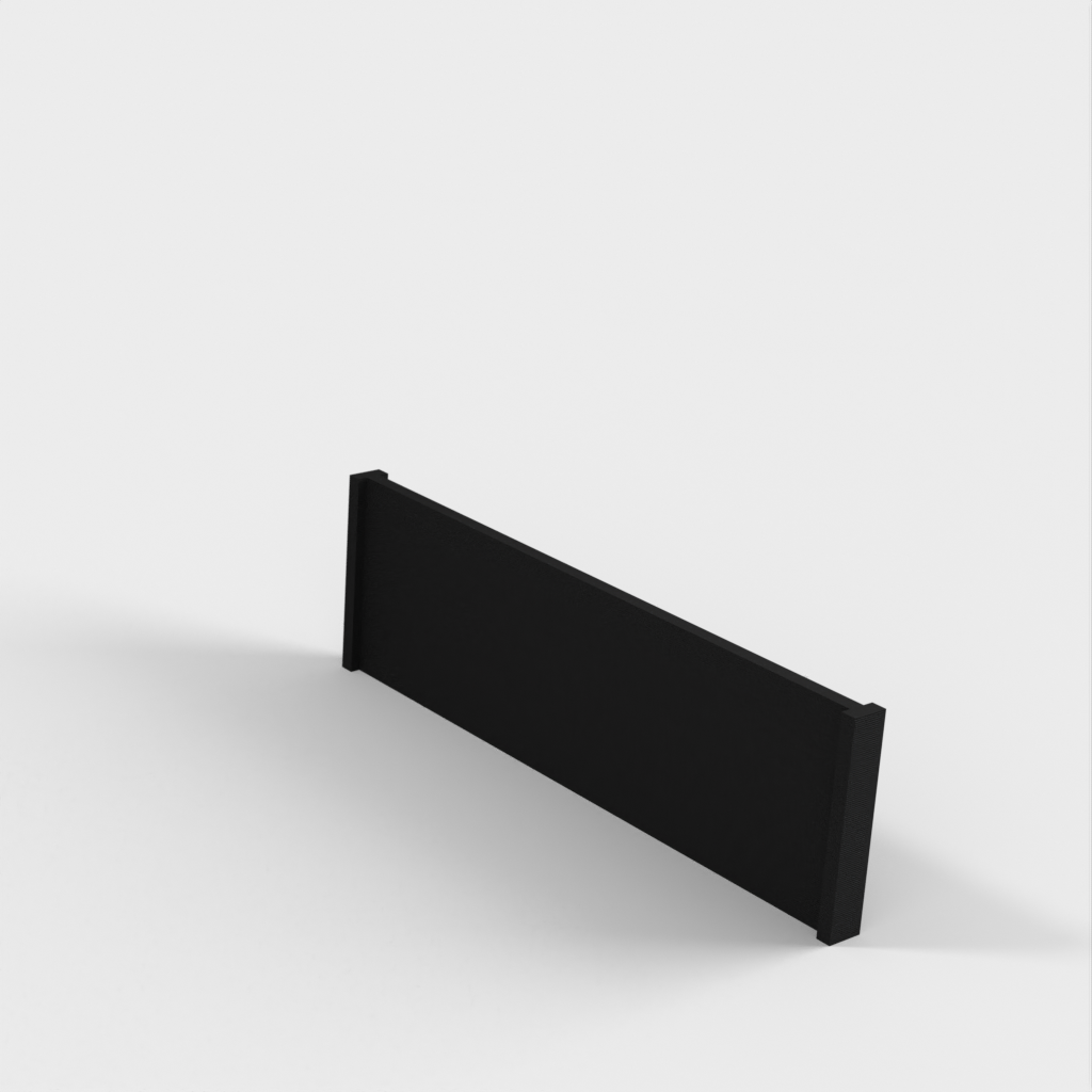 Απλό σύστημα οργάνωσης για συρτάρια. Αυτό το σύστημα χρησιμοποιεί συνδέσμους L στις γωνίες, συνδέσμους Τ στις εξωτερικές πλευρές και εγκάρσιους συνδέσμους για τους εσωτερικούς κόμβους. Εκτυπώστε τα απαραίτητα διαχωριστικά και συνδέστε τα κόβοντας τους συνδέσμους από πάνω. Αν χρειάζεστε ψηλότερα χωρίσματα, απλά κλιμακώστε τόσο τα χωρίσματα όσο και τις συνδέσεις στην ίδια αναλογία στην κατεύθυνση Z.